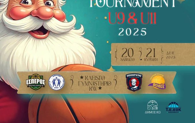Το 5ο BASKETBALL XMAS ESPEROS TOURNAMENT θα λάβει χώρα στο κλειστό γυμναστήριο της Κω "Δημήτρης Παππούλης", το Σάββατο 20/12 και την Κυριακή 21/12 με τη συμμετοχή του διοργανωτή Έσπερου, του Δικαίου, του Φοίβου και του Ιπποκράτη.