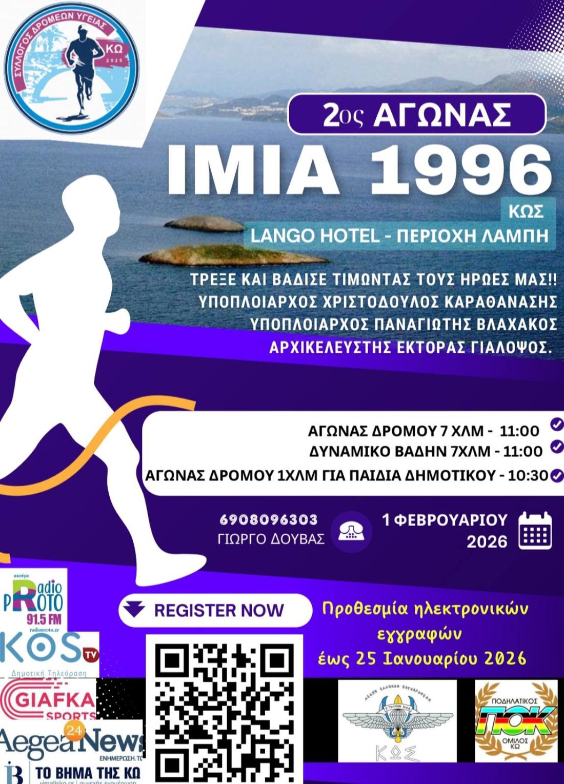 Ο πρώτος αγώνας για το 2026 "Ίμια 1996" θα πραγματοποιηθεί στις 01 Φεβρουαρίου 2026. Είναι το ελάχιστο που μπορούμε να κάνουμε προκειμένου να τιμήσουμε τους τρεις ήρωες του ελικοπτέρου που κατέπεσε στη θαλάσσια περιοχή των Ιμίων.