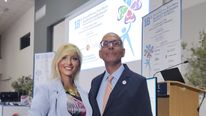 Στην Τελετή Λήξης του 18ου Πανελληνίου Συνεδρίου Καρδιοµεταβολικών Παραγόντων Κινδύνου πραγματοποιήθηκε πρωτοποριακή Διάλεξη με θεματολογία τα Εμπόδια και τις νέες ευκαιρίες στην ανάπτυξη αποτελεσματικών θεραπειών για τη διαβητική νευροπάθεια με ομιλητή τον κ.Παπάνα Νικόλαο, Καθηγητή Παθολογίας-Σακχαρώδους Διαβήτη, Υπεύθυνος Διαβητολογικού Κέντρου – Ιατρείου Διαβητικού Ποδιού, Β' Πανεπιστημιακή Παθολογική Κλινική Δημοκρίτειο ΠανεπιστήμιοΘράκης, τ. Πρόεδρος Ευρωπαϊκής Ομάδας, Μελέτης Διαβητικού Ποδιού, τ. Αντιπρόεδρος DiabeticFootInternational, τ. Πρόεδρος Ελληνικής Διαβητολογικής Εταιρείας,Αρχισυντάκτης TheInternationalJournalofLowerExtremityWounds, VisitingProfessorsat the GermanDiabetes Centre (DDZ) in Düsseldorf, Αντιπρόεδρος Εταιρείας Μελέτης Παθήσεων ΔιαβητικούΠοδιούμε συντονιστή τον κ. τον κύριο Ιωάννη Κυριαζή MD, PhD, FNSCOPE, Παθολόγος - Διαβητολόγος, Διευθυντής Παθολογικής Κλινικής & Επιστ. Υπεύθυνος Διαβητολογικού Ιατρείου και Ιατρείου Παχυσαρκίας Γ.Ν. Αττικής «Κ.Α.Τ.», Πρόεδρος Δ.Σ. Εταιρείας Μελέτης Παραγόντων Κινδύνου για Αγγειακά Νοσήματα (Ε.Μ.Πα.Κ.Α.Ν.), Γενικός Γραμματέας Δ.Σ Εταιρείας Παθολογίας Ελλάδος (Ε.Π.Ε.), Γραμματέας Εταιρείας Κλινικών Εφαρμογών & Θεραπευτικής Χρονίων Νοσημάτων (Ε.Κ.Ε.Θε.Χ.Νο) και με πλήθος συνέδρων.Ο καθηγητήςκ.Παπάνας Νικόλαοςκαι οι Πρόεδροι της Οργανωτικής Επιτροπής του Συνεδρίου συνεχάρησαν τις κυρίεςΕλένη Σταματοπούλου και Αθηνά Κυριαζή για την επιτυχή παρουσίαση των ανωτέρω εργασιών.