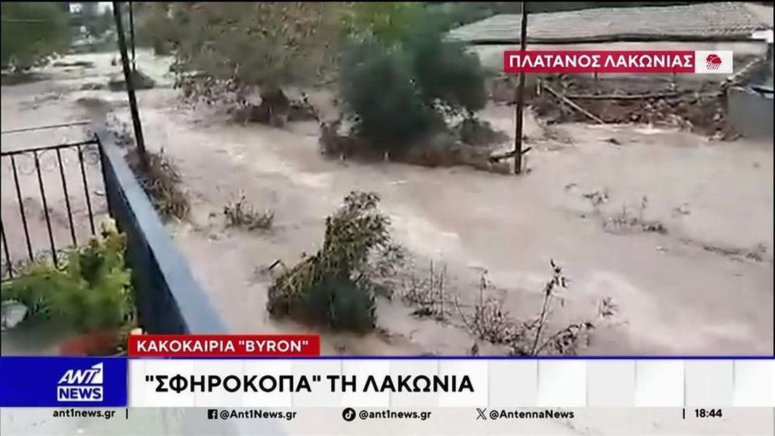 Ο καιρός σήμερα είναι ιδιαίτερα άστατος και ήδη στη Λακωνία καταγράφονται σοβαρά προβλήματα, καθώς στην περιοχή έχει πέσει μεγάλος όγκος νερού — πάνω από 100 τόνους ανά στρέμμα στη Σκάλα Λακωνίας — σε έναν τόπο που είχε πληγεί και στην προηγούμενη κακοκαιρία.