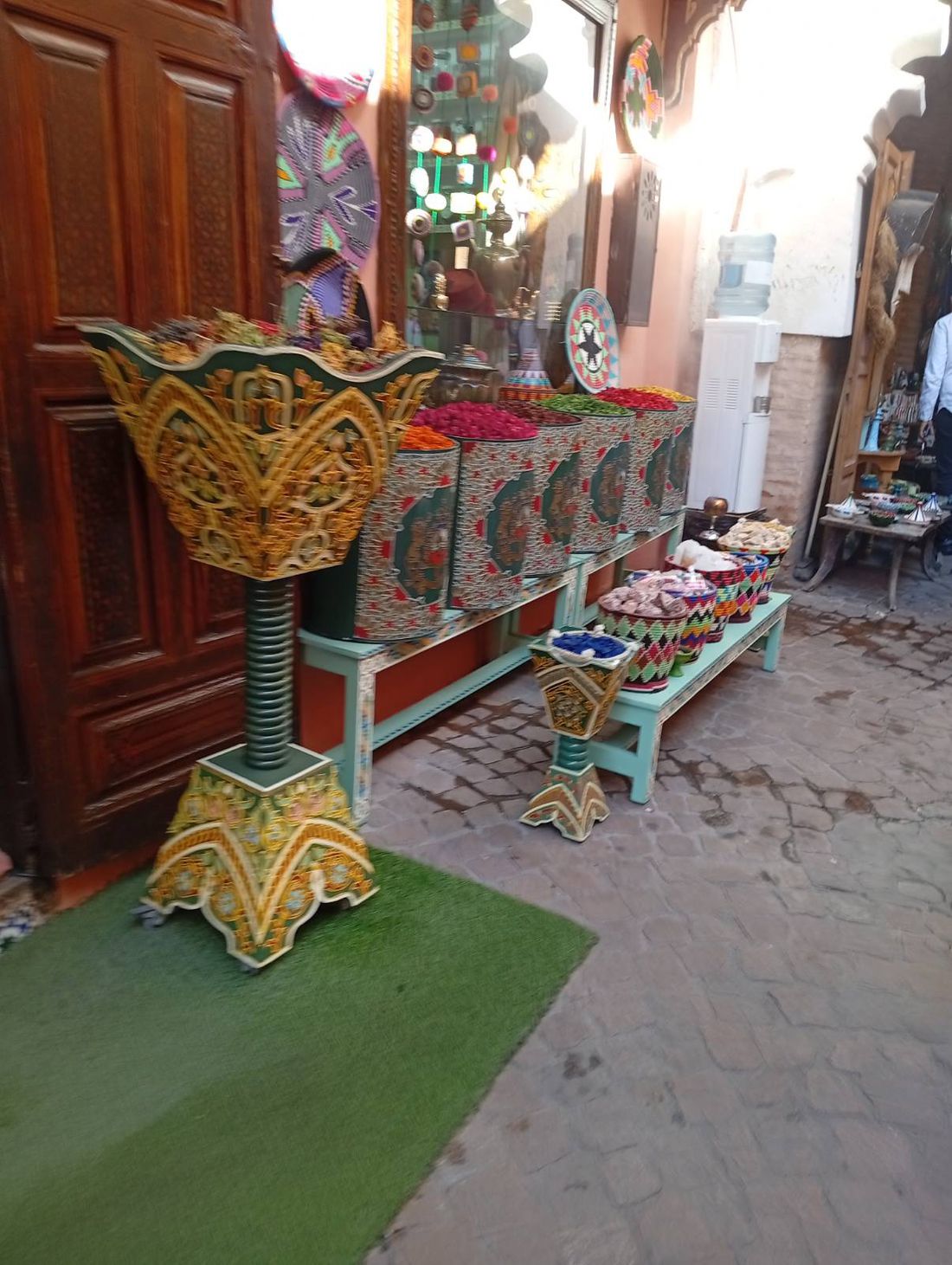 Αλλά και την κεραμοποιία, με άριστους καλλιτέχνες, αγγειοπλάστες που φτιάχνουν περιζήτητα, πήλινα χρηστικά και διακοσμητικά ειδη, με το πιο διαδεδομένο, το κωνοειδές σκεύος το ταντζί, όπου μέσα ψήνουν κρέας και λαχανικά με μπαχαρικά στο φούρνο. Στην κεντρική πλατεία του Μαρακές, συμβαίνουν τα πιο παράξενα γεγονότα. Μικρές μαϊμούδες χορεύουν, γητευτές φιδιών, παίζουν μουσική, στις μαύρες κόμπρες, πλανόδιοι κάθε ηλικίας, προσπαθούν να πουλήσουν τα πάντα.