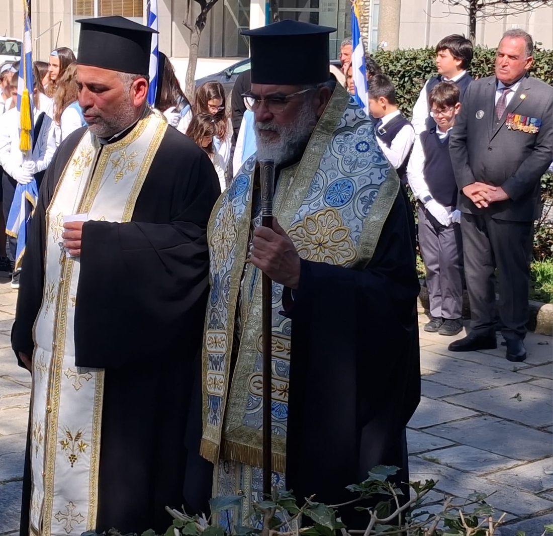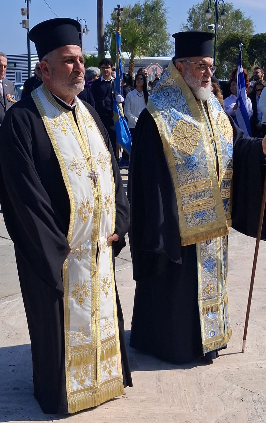 Στο πλαίσιο της τελετής τελέστηκε και επιμνημόσυνη δέηση, αποτίοντας φόρο τιμής στους αγωνιστές που συνέβαλαν με τον αγώνα και τη θυσία τους στην απελευθέρωση των νησιών μας.