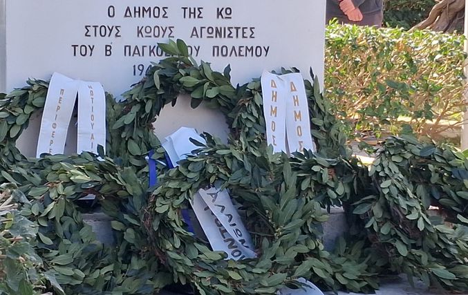 Μετά το τέλος των σχολικών εκδηλώσεων, όπως συνηθίζεται κάθε χρόνο, μαθητές, εκπαιδευτικοί, καθώς και εκπρόσωποι των τοπικών αρχών και φορέων, προχώρησαν στην κατάθεση στεφάνων στα μνημεία της Κω.