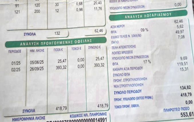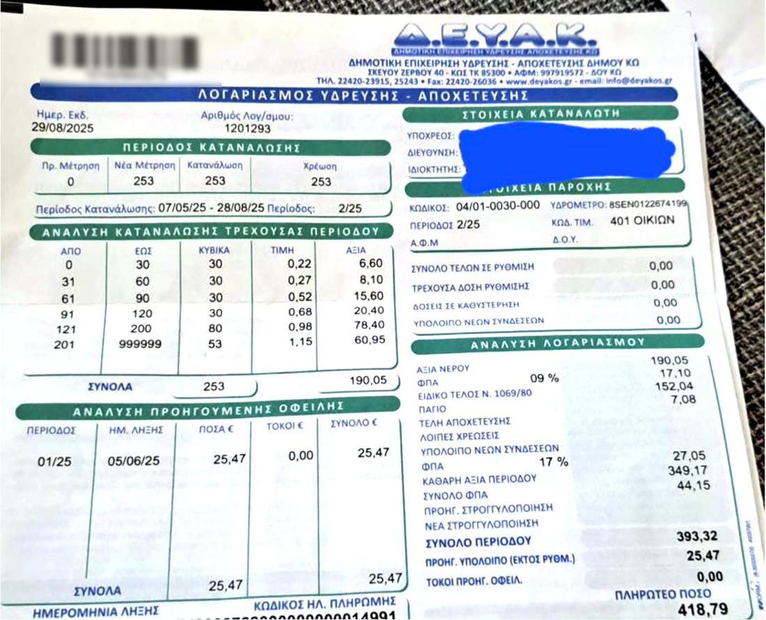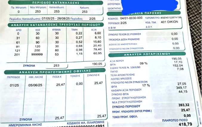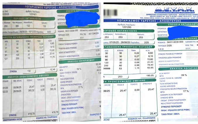 Καταγγελία από κάτοικο Αντιμάχειας για "εξαπάτηση" στους λογαριασμούς του νερού!