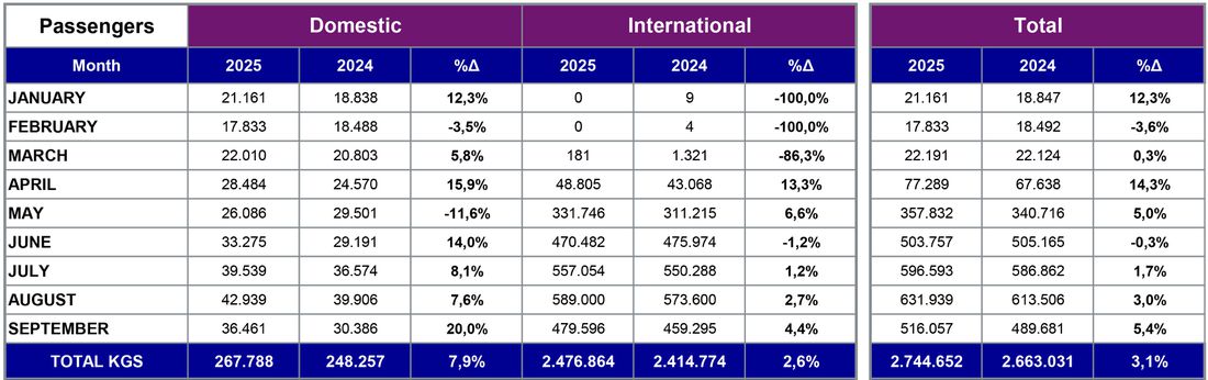 Η διεθνής επιβατική κίνηση έφτασε τους 4.630.00 επιβάτες, σημειώνοντας 3,1% αύξηση σε σύγκριση με τον Σεπτέμβριο του 2024.