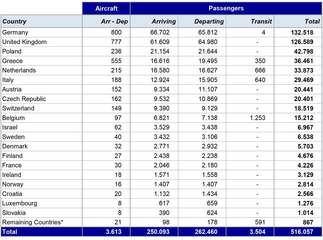 Οι Γερμανοί επανήλθαν δριμύτεροι τον Σεπτέμβριο, κατακτώντας την πρώτη θέση (66.702 επιβάτες), ενώ ακολουθούν οι Άγγλοι (61.609), οι Πολωνοί (21.154), Ολλανδοί (16.580) και Ιταλοί (12.924)