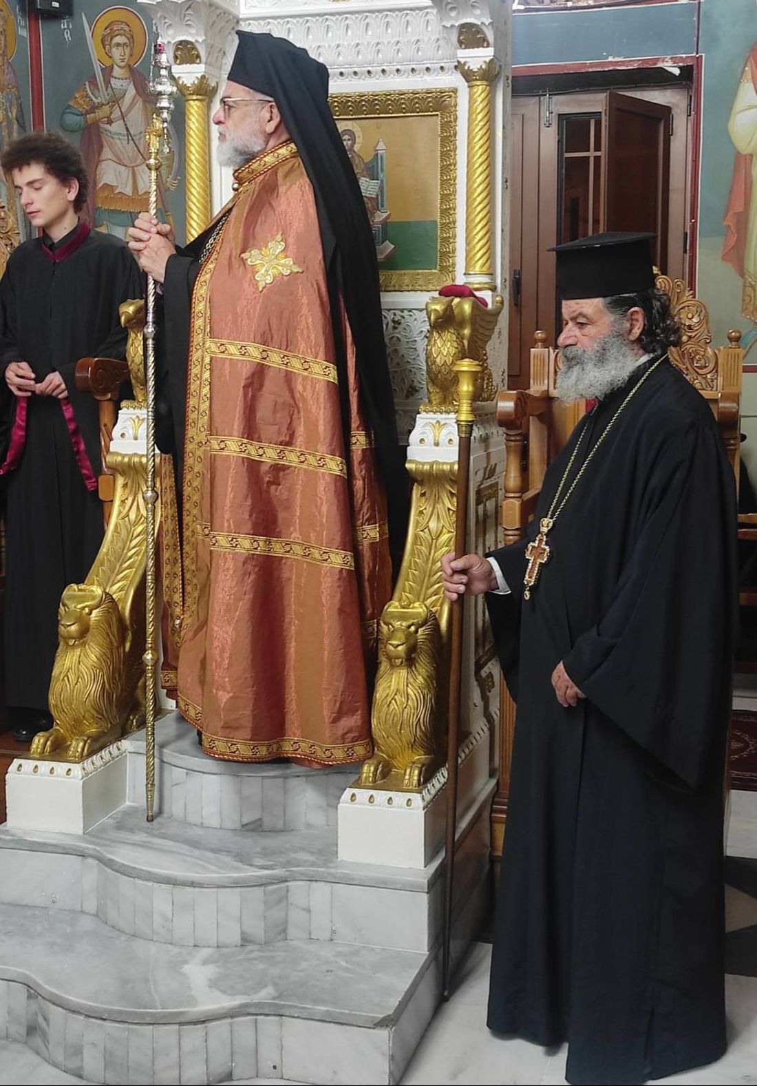 Στον εσπερινό χοροστάτησε  ο Μητροπολίτης Κώου και Νισύρου κ. Ναθαναήλ πλαισιωμένος από τους Πανοσ. Αρχιμανδρίτες π. Διονύσιο Παριάρο και  π. Στέφανο Κουζούκα, και τους Ιερείς: τον Αρχιερατικό επίτροπο π. Αντώνιο Κασιώτη, και τον π. Ιωάννη Σεβαστάκη, Ιερατικό προϊστάμενο του ιερού ναού.