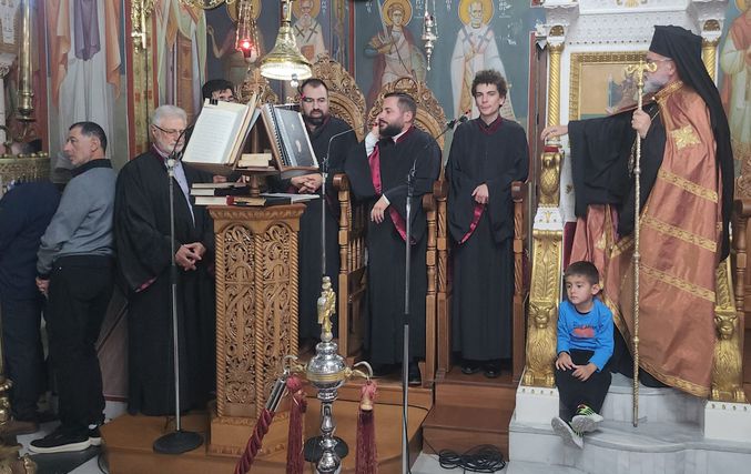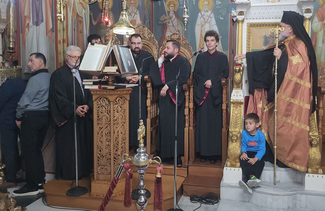 Έψαλε χορός Ιεροψαλτών υπό τον Πρωτοψάλτη Γιάννη Πεταλά, Γιώργος Μιαούδης,Μιχάλης Κορδιστός, Νίκος Τσιφτσής και Ευάγγελος Παλούμπης.