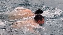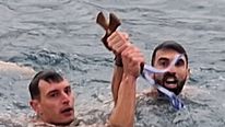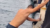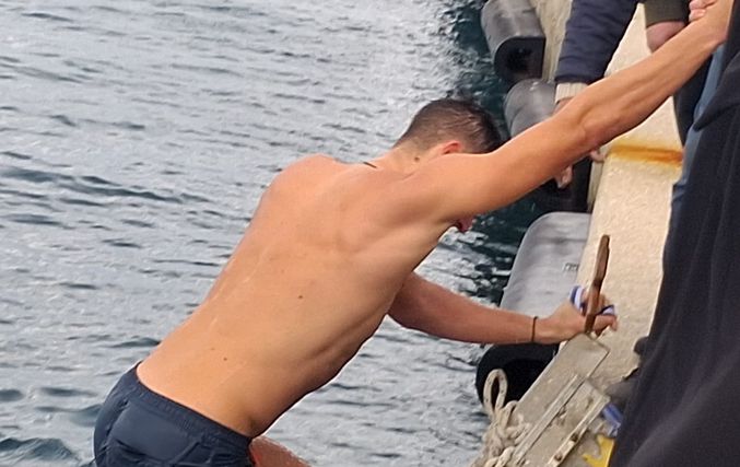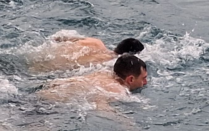 Ακολούθησε λιτανευτική πομπή, η οποία κατευθύνθηκε προς την προβλήτα μπροστά από το Διοικητήριο. Εκεί, πραγματοποιήθηκε η καθιερωμένη Κατάδυση του Τιμίου Σταυρού στη θάλασσα, παρουσία του ιερού κλήρου, των τοπικών αρχών και πλήθους πιστών, οι οποίοι παρακολούθησαν με ευλάβεια και συγκίνηση την κορύφωση του εορτασμού.
