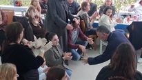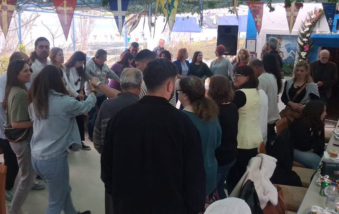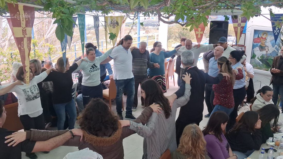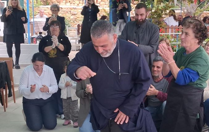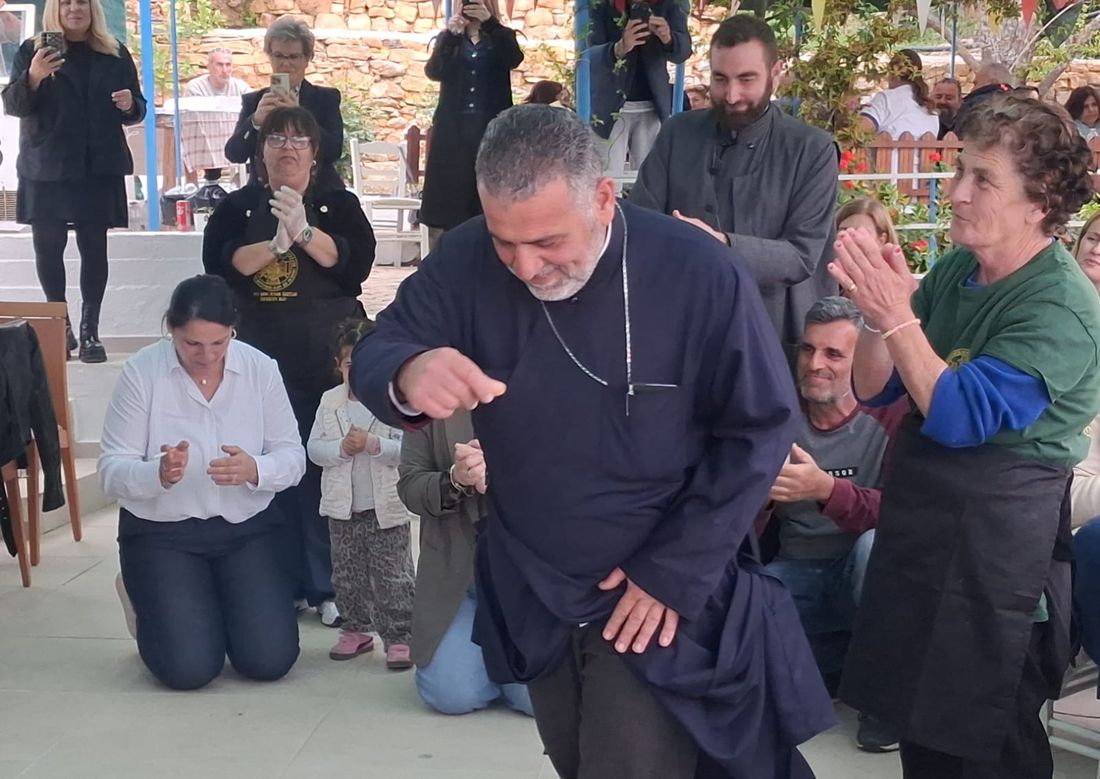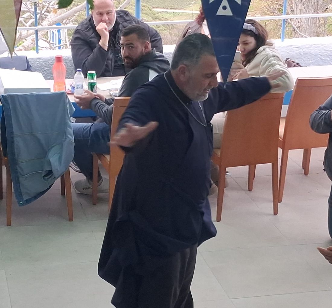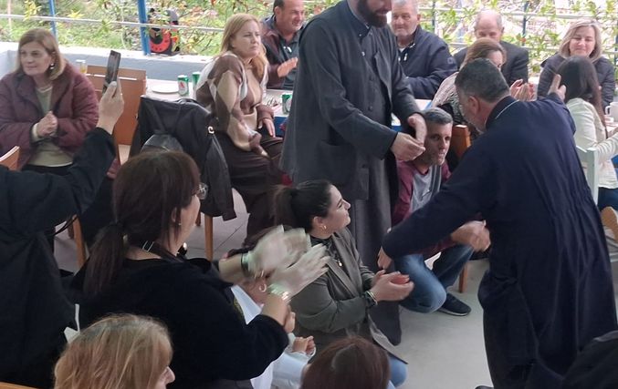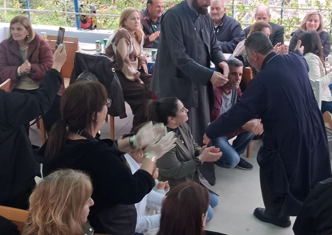 Στην εκδήλωση παρευρέθηκε και ο εφημέριος π. Ιωάννης Κώστογλου, ο οποίος απηύθυνε ευχές στους παρευρισκόμενους, μεταφέροντας και τις ευχές του Μητροπολίτη.