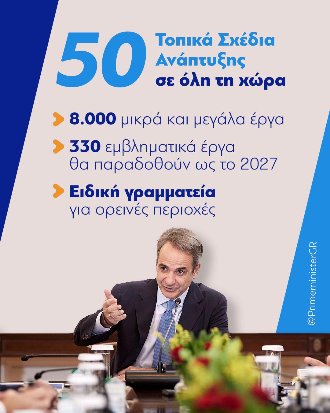 Πλήρης οδικός χάρτης με έργα που υλοποιούνται σε όλη τη χώρα και σειρά πρωτοβουλιών για την άρση των ανισοτήτων στην περιφέρεια, παρουσιάστηκαν κατά τη συνεδρίαση του Κυβερνητικού Συμβουλίου Οικονομικής Πολιτικής, υπό τον Κυριάκο Μητσοτάκη, την Τετάρτη. Όπως επισημαίνει το Μέγαρο Μαξίμου, σήμερα, στην ελληνική περιφέρεια, υλοποιούνται περισσότερα από 8.000 μικρά και μεγάλα έργα, ενώ το 2026 και το 2027 θα παραδοθούν περισσότερα από 330 εμβληματικά έργα.