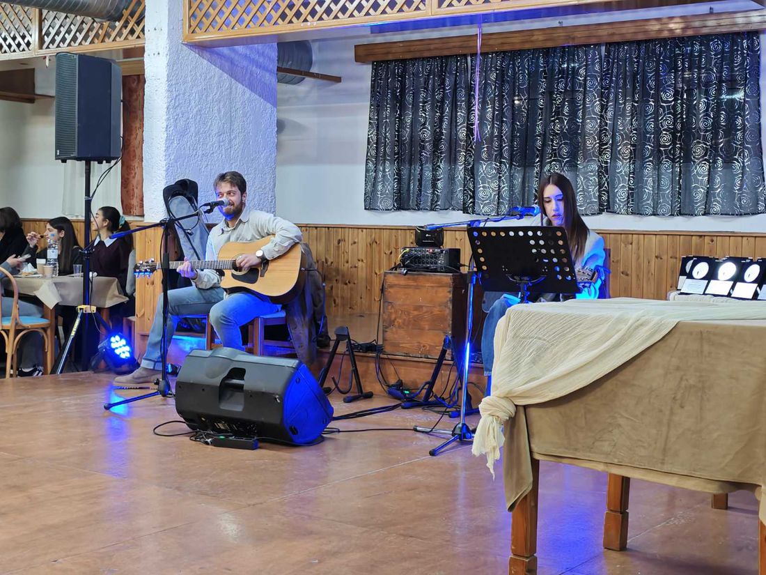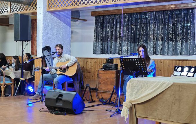 Τη γιορτινή ατμόσφαιρα πλαισίωσαν μουσικά οι εκπαιδευτικοί του σχολείου Γιώργος Γιαννης και Σαββίνα Σερελη που με τις εξαιρετικές του ερμηνείες, κέρδισαν το θερμό χειροκρότημα του κοινού.