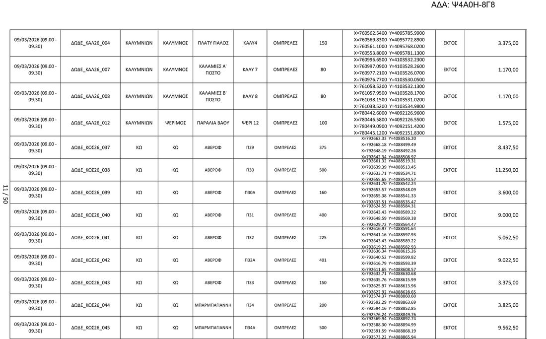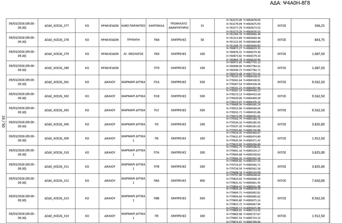 Ακολουθούν οι παραλίες που θα βγουν σε πλειστηριασμό στις 9/3/26, μαζί με την αρχική τιμή εκκίνησης