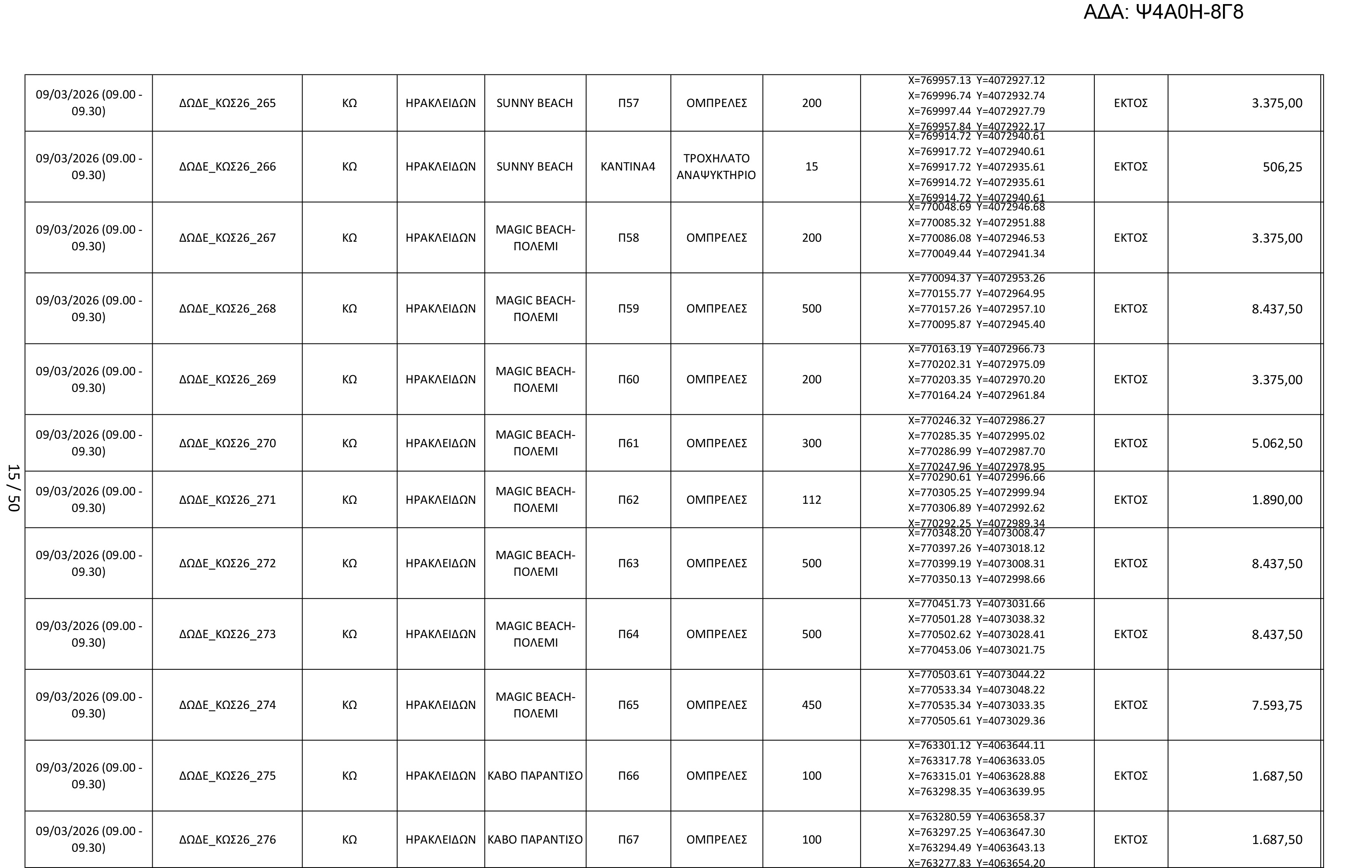 Ο διαγωνισμός έχει οριστεί για τις 9 Μαρτίου 2026 από τις 09:00 μέχρι τις 09:30 το πρωί, ενώ η προθεσμία υποβολής αιτήσεων συμμετοχής έληξε στις 24 Φεβρουαρίου. Η διαδικασία την ημέρα εκείνη, αναμένεται να είναι ταχύτατη, όπως άλλωστε φαίνεται και από το μικρό χρονικό περιθώριο που θα έχουν στην διάθεσή τους οι ενδιαφερόμενοι για να πλειοδοτήσουν. Οι ενδιαφερόμενοι θα καταθέσουν τις προσφορές τους για τα 118 τμήματα που έχουν μέχρι τώρα ανακοινωθεί και όποιος δώσει την υψηλότερη, θα εξασφαλίσει την παραλία για τα επόμενα τρία χρόνια.