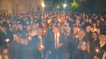 Τη στιγμή που το ρολόι έδειξε μεσάνυχτα, οι καμπάνες ήχησαν χαρμόσυνα και ο ουρανός φωτίστηκε από εντυπωσιακά πυροτεχνήματα, σηματοδοτώντας τη χαρμόσυνη είδηση της Ανάστασης.