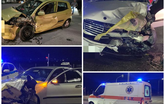 Σφοδρή σύγκρουση 2 αυτοκινήτων (ενός ΙΧ και ενός ταξί) σημειώθηκε το βράδυ της Παρασκευής στη διασταύρωση προς Τιγκάκι. Από την σύγκρουση σημειώθηκαν σοβαρές υλικές ζημιές, ενω ένα άτομο μεταφέρθηκε στο νοσοκομείο με ασθενοφόρο.