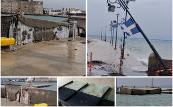 Έσπασαν τα μπλόκια στο λιμάνι της Κω - Έπεσαν κολώνες φωτισμού- Zημιές και σε επιχειρήσεις (vid)