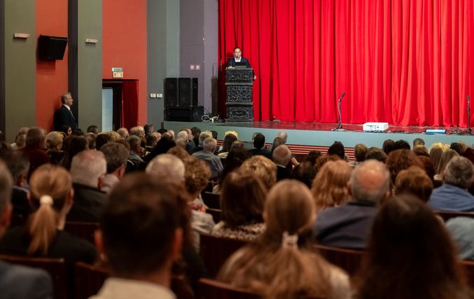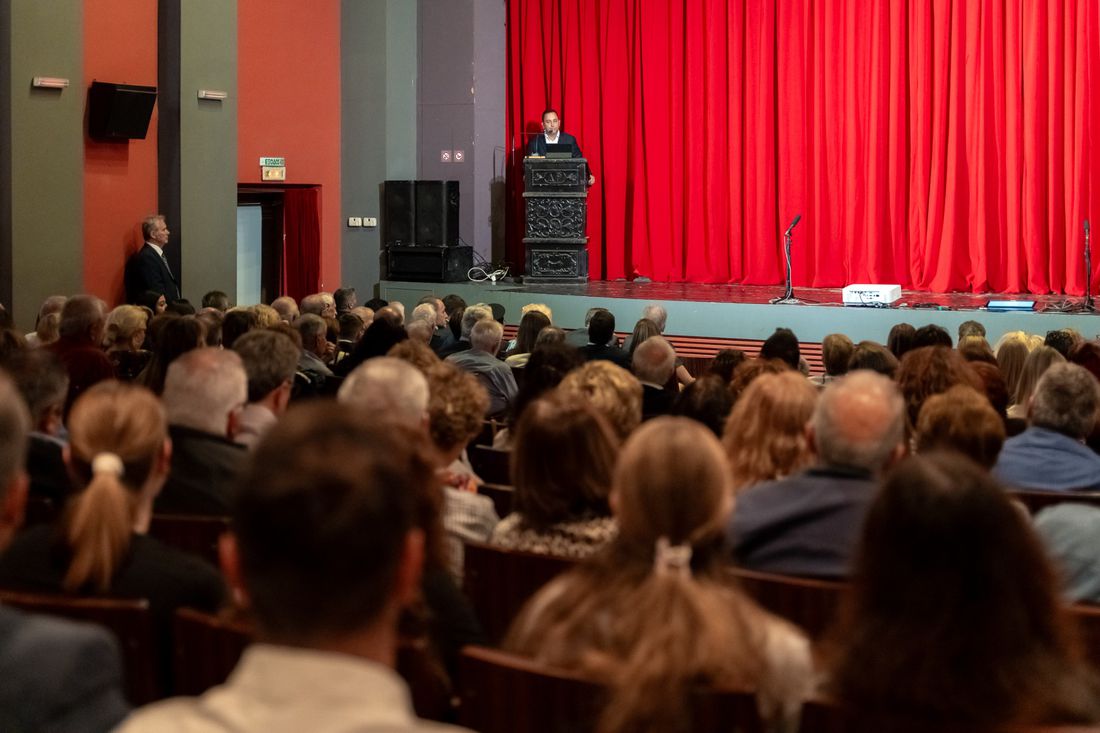 Κατάμεστο το Θέατρο Ρόδου στην εκδήλωση της Παγκωακής Αδελφότητας Ρόδου αφιερωμένη στον Αριστοτέλη Παυλίδη