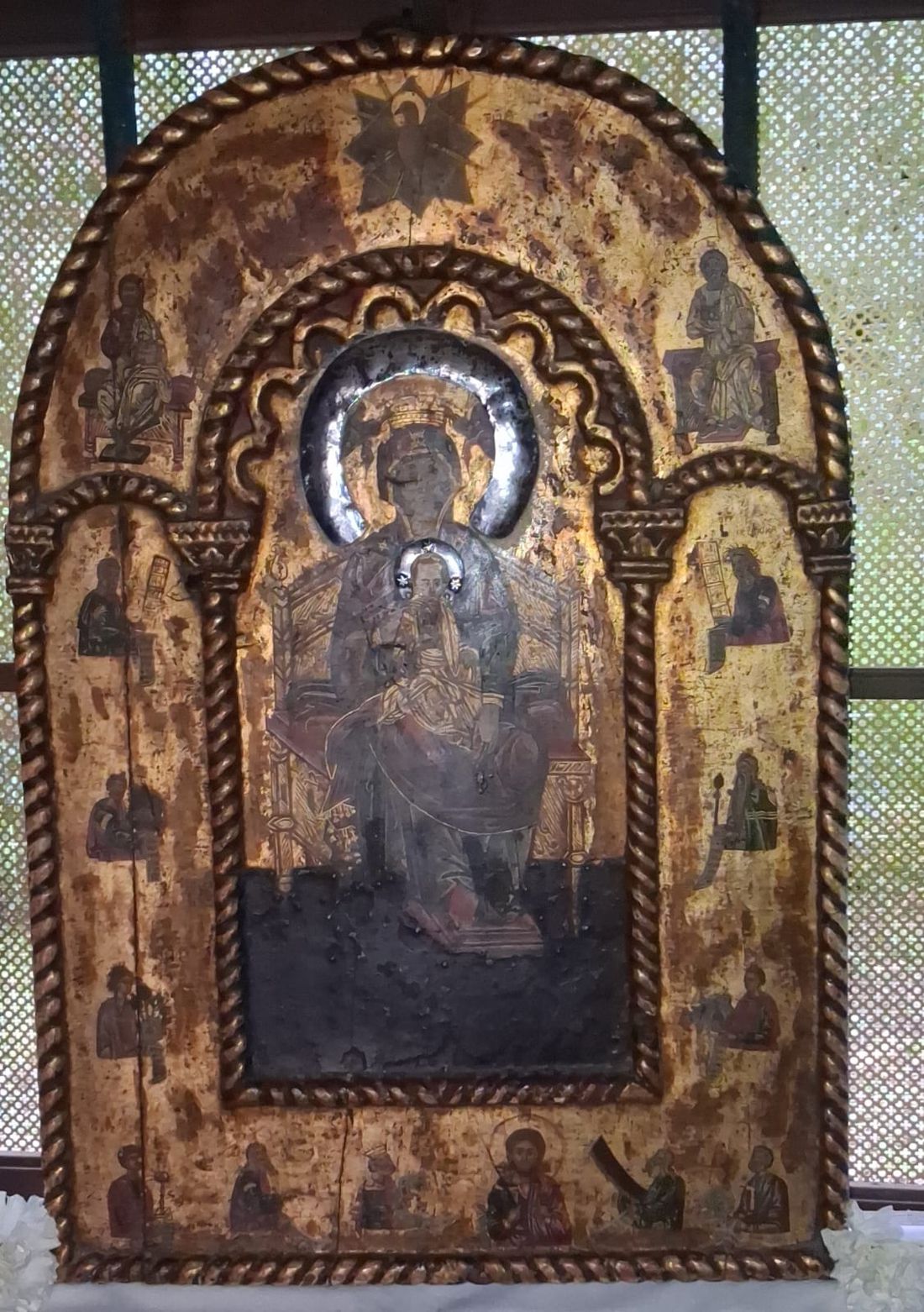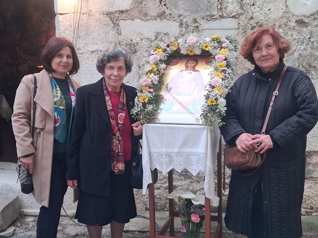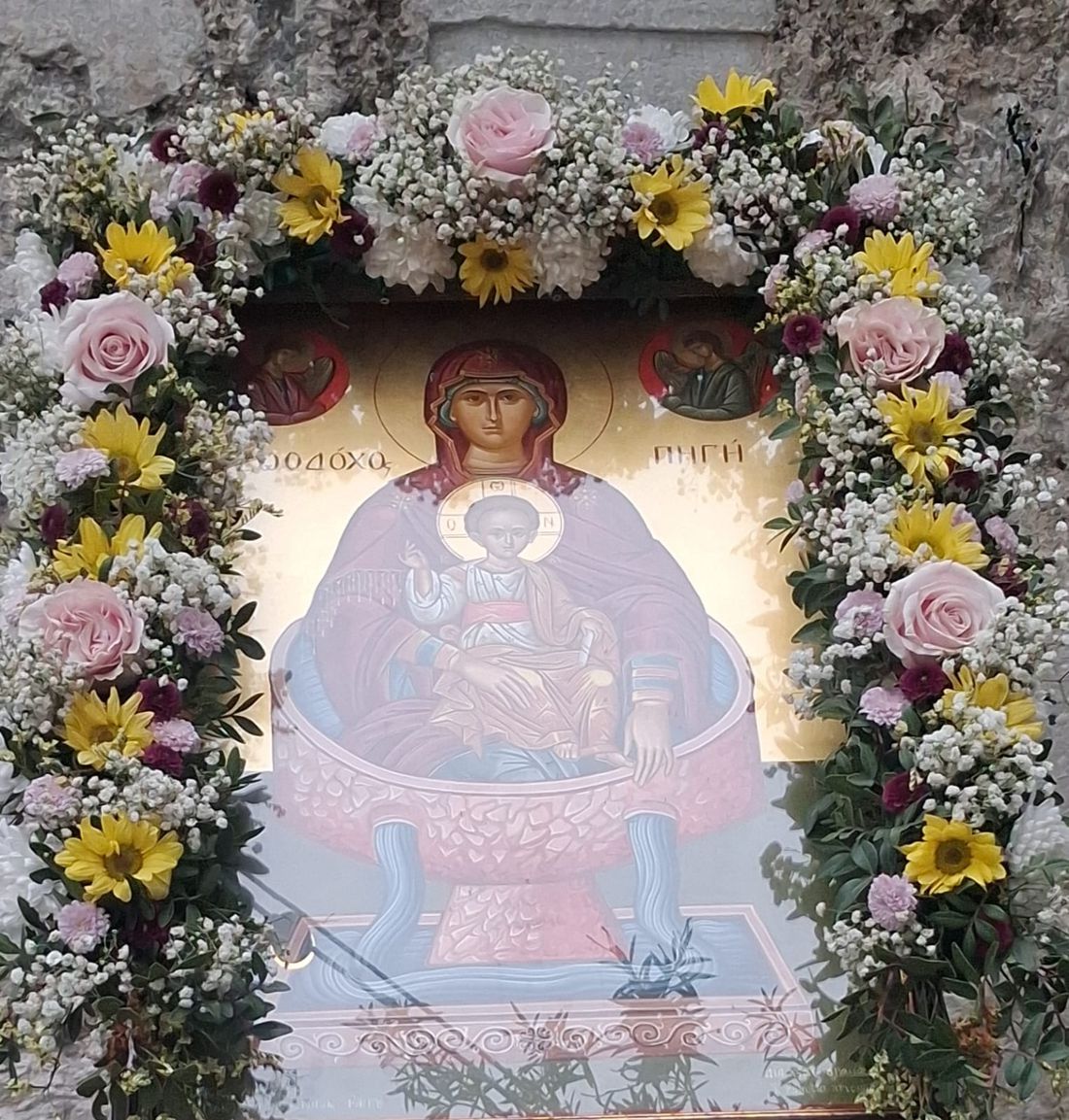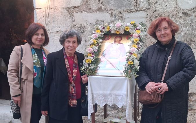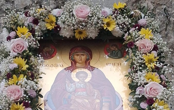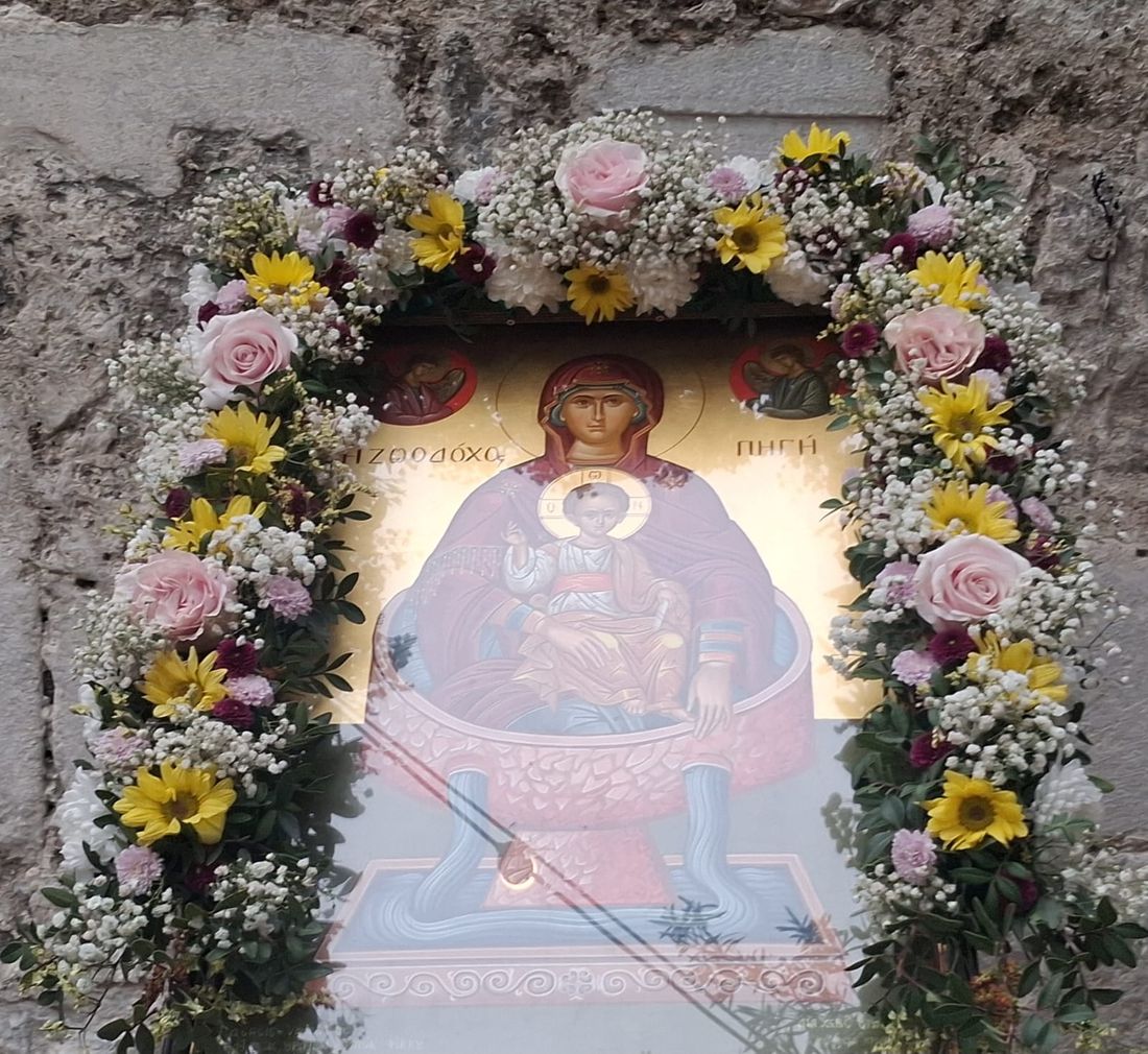 Τέλος ο Σεβασμιώτατος ευχαρίστησε για άλλη μια φορά την κ. Νένα Φάκκου για την αφιέρωση της πολύ όμορφης εικόνας της Παναγίας Ζωοδόχου Πηγής, την οποία Αγιογράφησε η Αγιογράφος του Εργαστηρίου της Ιεράς Μητροπόλεως κ. Χρυσή Τσιούρη με άλλη μια μαθήτρια της για προσκύνηση στον ιερό ναό.