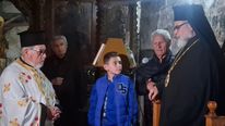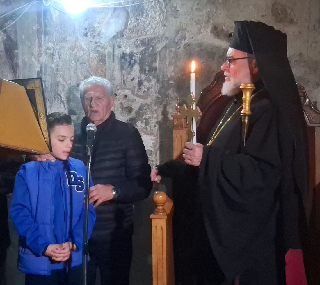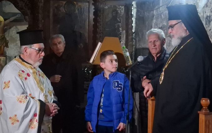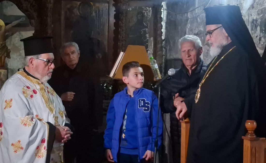 Έψαλλαν ο καθηγητής Πρωτοψάλτης και Πρόεδρος των ιεροψαλτών Κω Γιώργος Σακέλλης με τον Ιεροψάλτη του Μητροπολιτικού ναού Νίκο Παπαθωμά και τον μικρό Δαυίδ Περουλή.