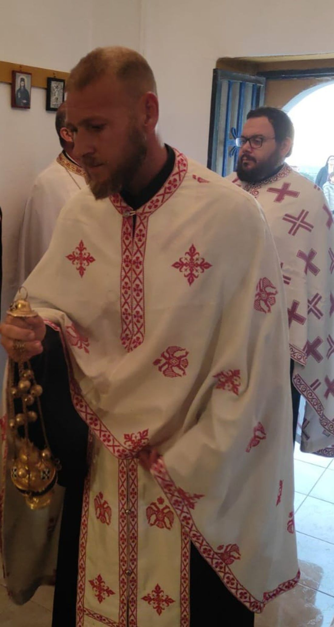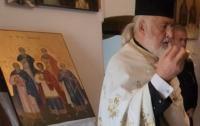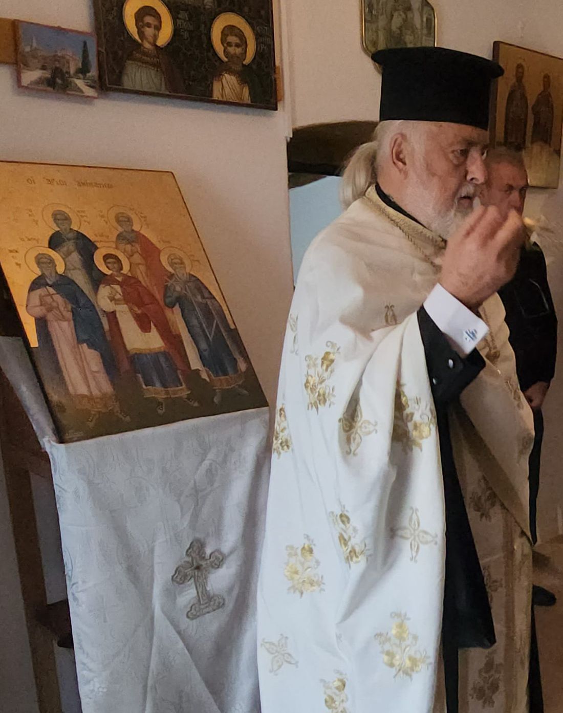 Τον Σεβασμιώτατο πλαισίωναν: ο π. Ηλίας Καμπάκης, ο π. Νικόλαος Γρύλλης, ο π. Περικλής Πουλέντσης και ο π. Κλεάνθης Μαρούσκος.