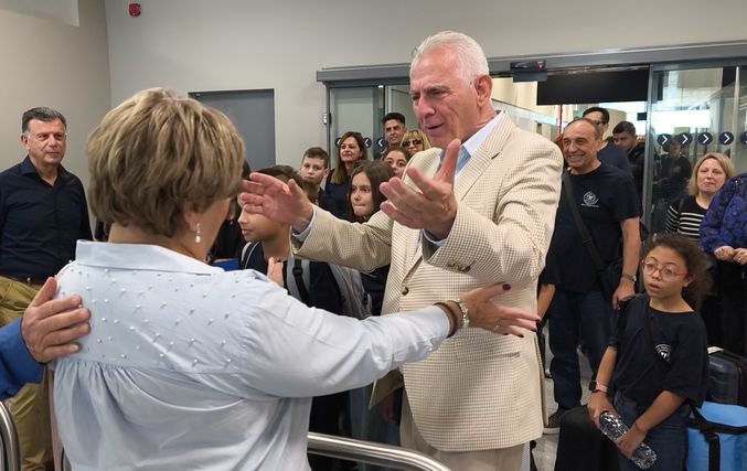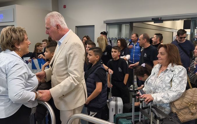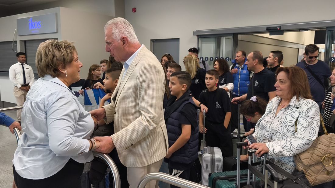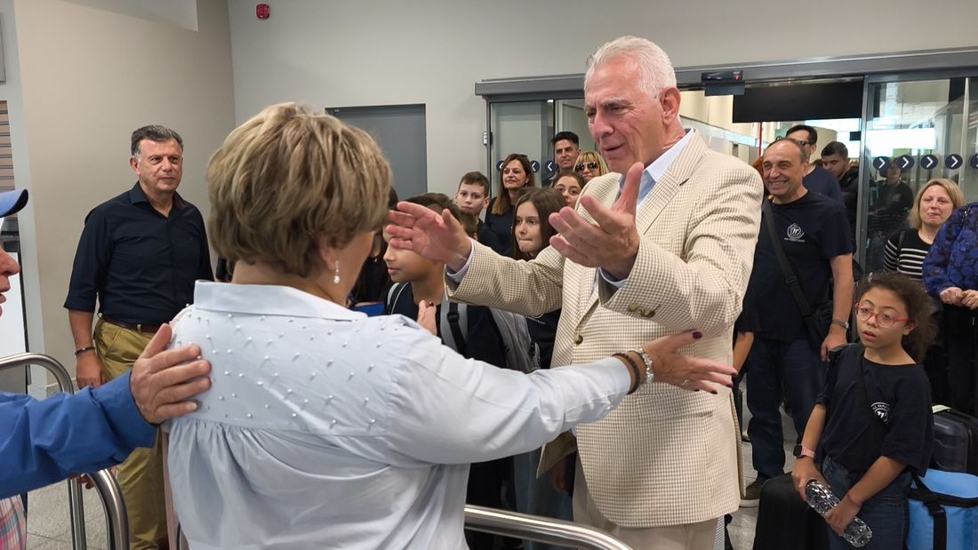 Συγκίνηση κατά την άφιξη των μαθητών και του δημάρχου Περιστερίου στην Κω. Θα παρελάσουν στην Ψέριμο. Τους υποδέχτηκε ο δήμαρχος Κω Συγκινητικές στιγμές εκτυλίχθηκαν το πρωινό της Δευτέρας 27 Οκτωβρίου 2025 στο αεροδρόμιο της Κω, κατά την άφιξη της αποστολής του 11ου Δημοτικού Σχολείου Περιστερίου.