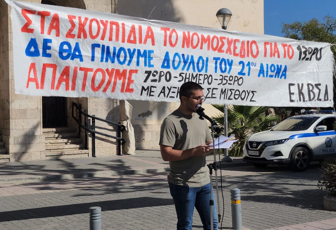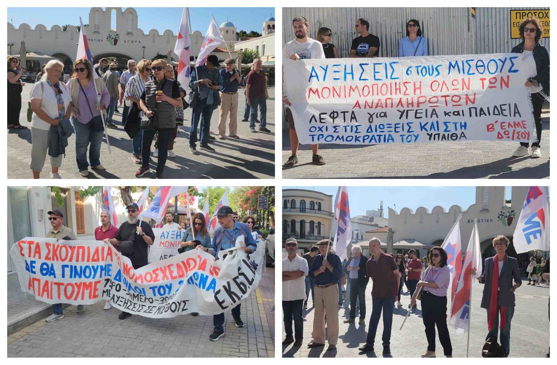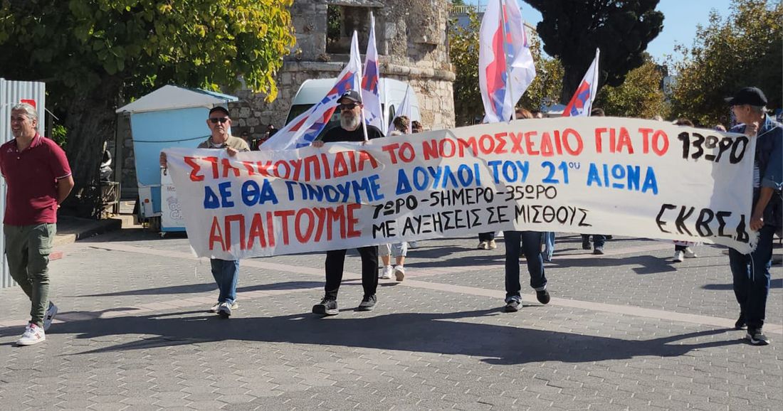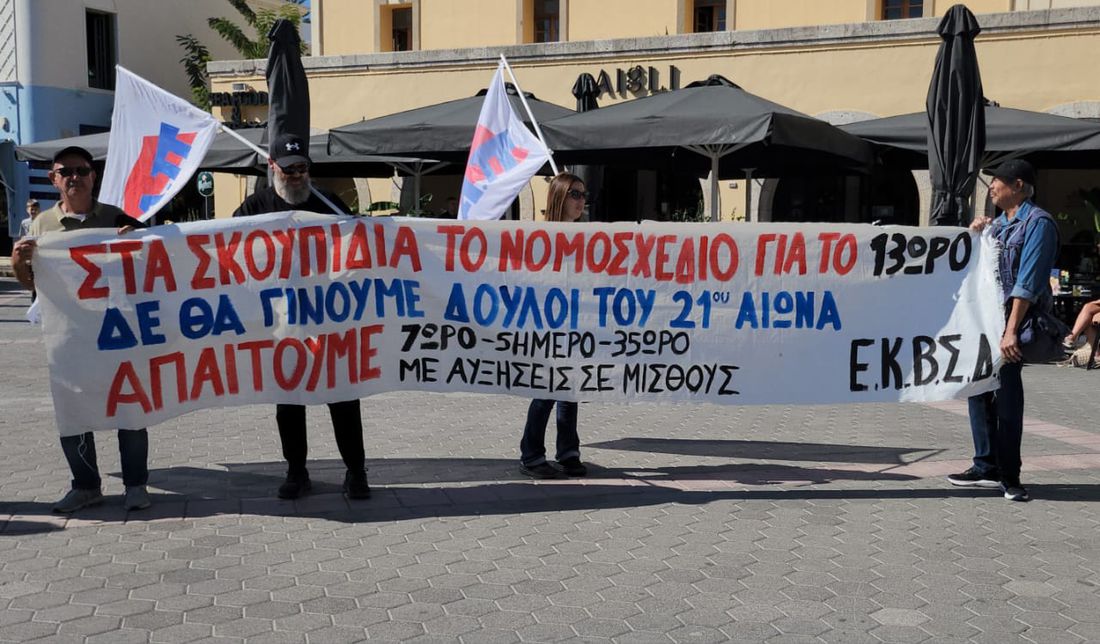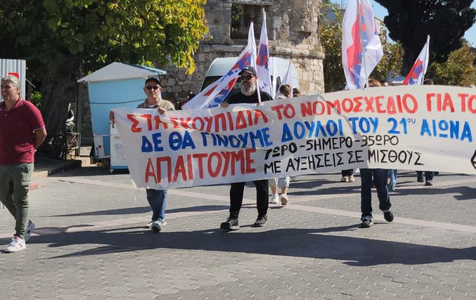Στην Κω, η κινητοποίηση πραγματοποιήθηκε στην Πλατεία Ελευθερίας, με τους (ελάχιστους) παρευρισκόμενους να δηλώνουν την εναντίωσή τους, ζητώντας να πεταχτεί στα σκουπίδια το «νομοσχέδιο της 13ωρης σκλαβιάς».