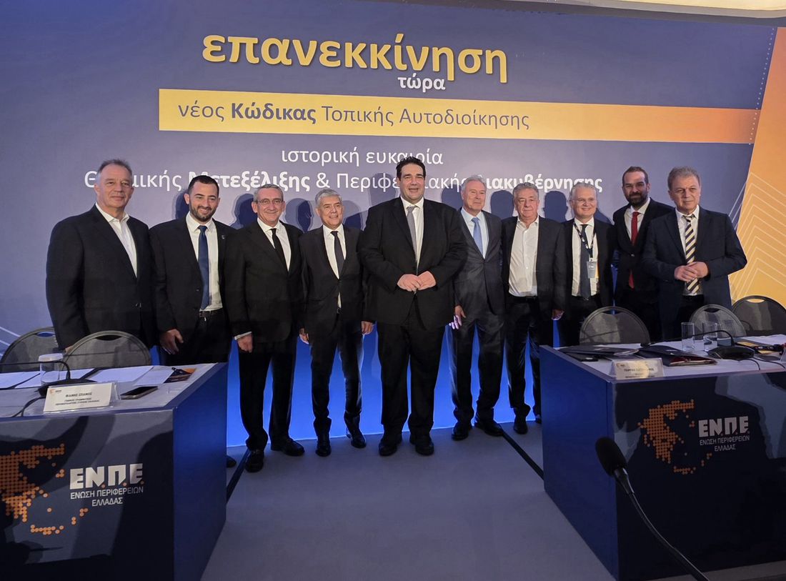 Ο Πρόεδρος της ΕΝΠΕ εξήρε  το έργο του Υπουργού Εσωτερικών Θεόδωρου Λιβάνιου για τον νέο Κώδικα Αυτοδιοίκησης, τονίζοντας ότι η κωδικοποίηση άνω των 500 νομοθετημάτων αποτελεί μια σημαντική τομή που παρέχει καθαρούς κανόνες, σαφήνεια ρόλων και ενισχύει την εμπιστοσύνη. Ξεκαθάρισε όμως ότι για την ΕΝΠΕ «αυτό είναι η αρχή. Και αφορμή επανεκκίνησης» και επανέλαβε ότι η ΕΝΠΕ έχει σταθερά θέσει ως στρατηγικό της στόχο τη μετάβαση στην Περιφερειακή Διακυβέρνηση,  ένα μοντέλο που ισχύει σε όλη τη Δυτική Ευρώπη και αποτελεί συστατικό στοιχείο του δημοκρατικού κεκτημένου.