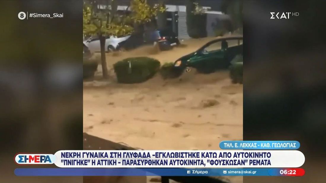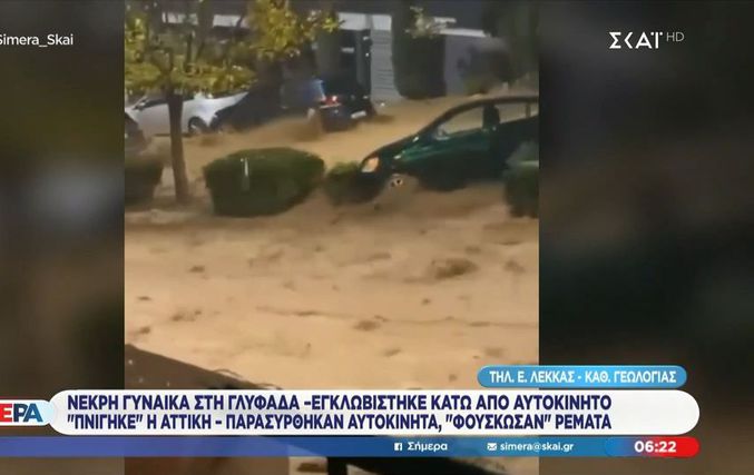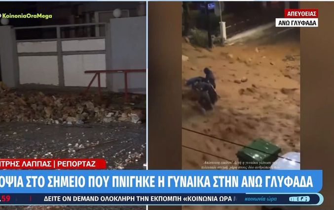 Την ίδια ώρα, στην Άνω Γλυφάδα, η 55χρονη γυναίκα προσπάθησε να διασχίσει τον δρόμο μέσα στην ένταση των φαινομένων, όταν παρασύρθηκε από τα νερά και κατέληξε εγκλωβισμένη κάτω από σταθμευμένο όχημα. Στο σημείο έσπευσαν δυνάμεις της Αστυνομίας και της Πυροσβεστικής, καθώς και διασώστης του ΕΚΑΒ με μοτοσικλέτα, ωστόσο η γυναίκα ανασύρθηκε χωρίς τις αισθήσεις της, με τις ενδείξεις να αποδίδουν τον θάνατό της σε πνιγμό.