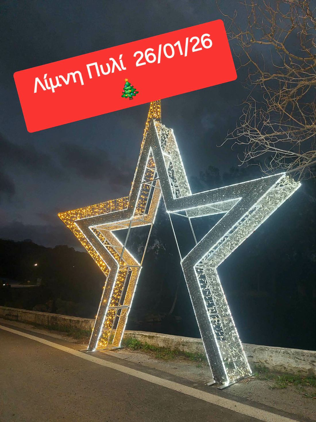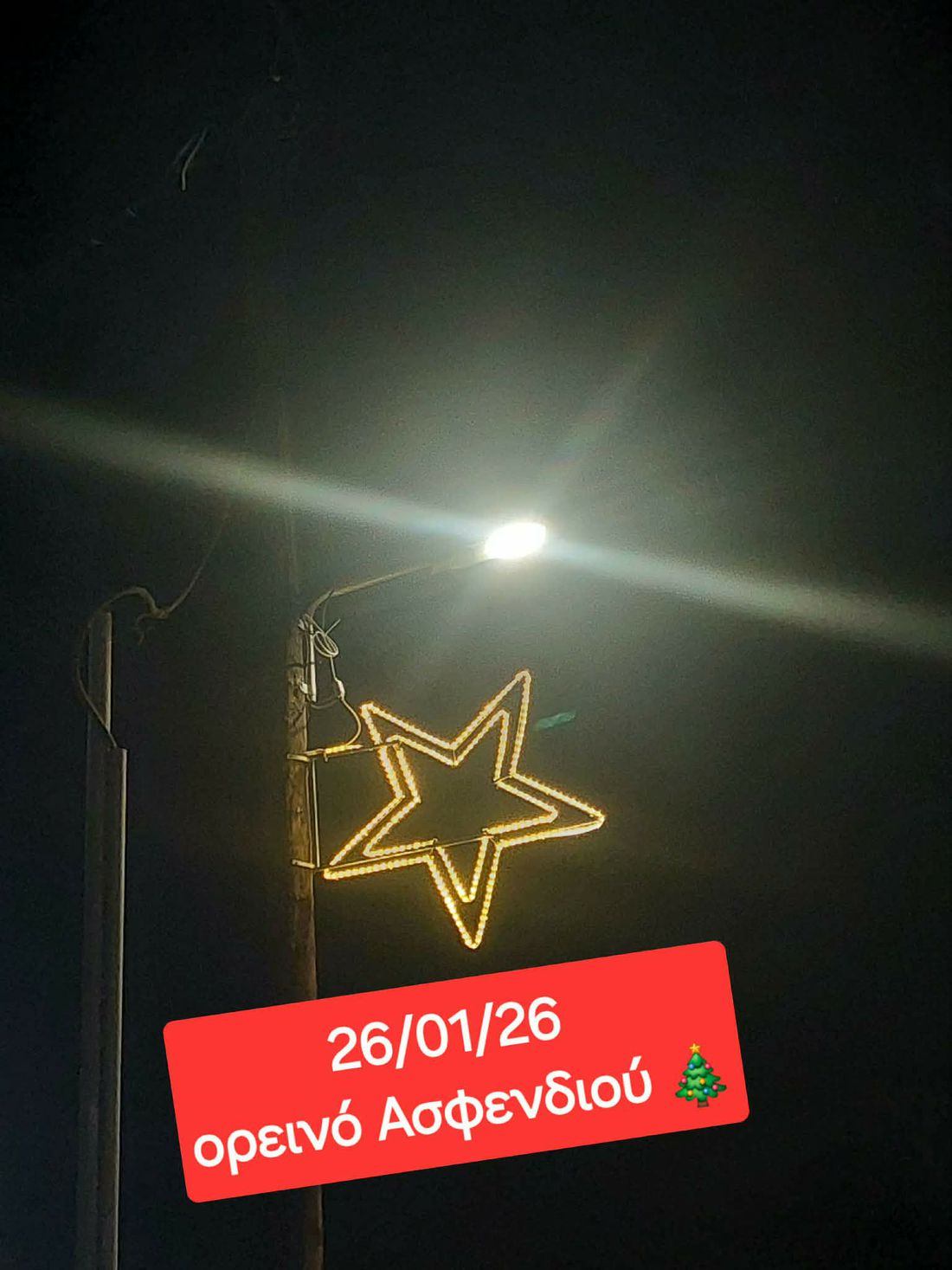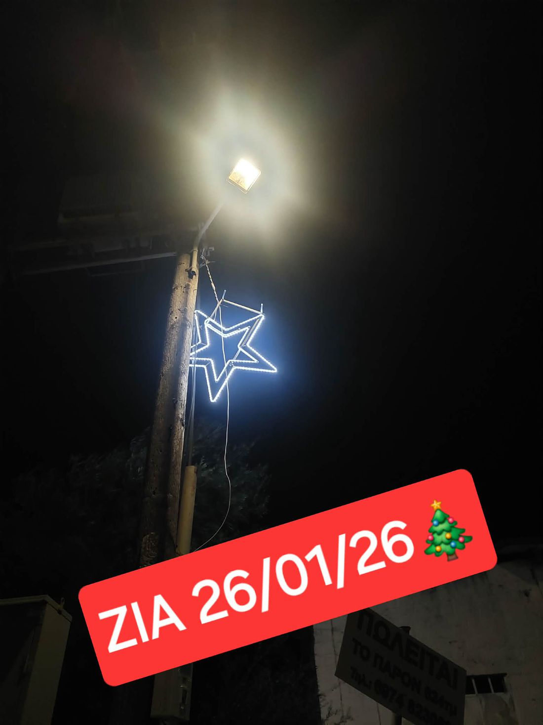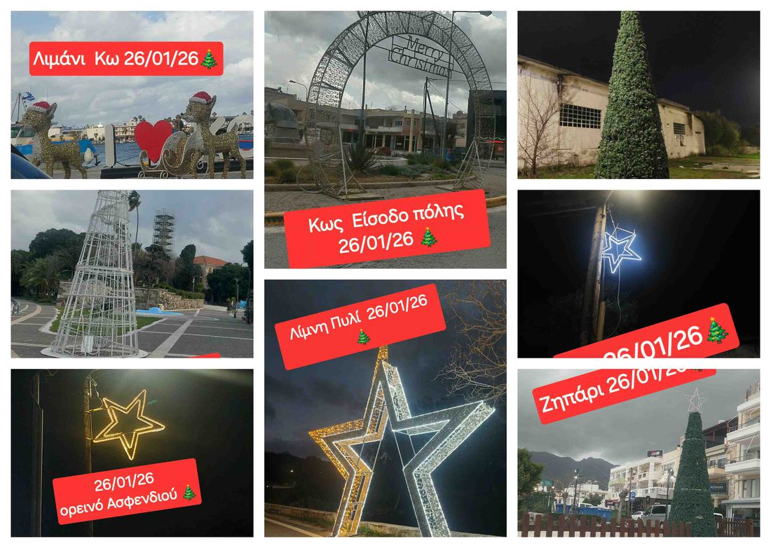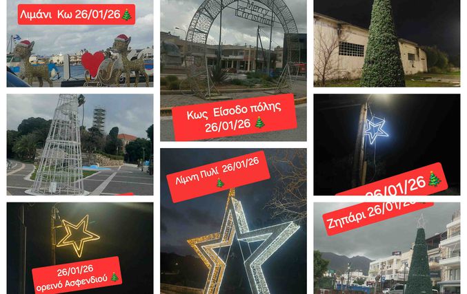 Δυστυχώς ακόμα και σήμερα 27/01/26 ο φτωχός χριστουγεννιάτικος διάκοσμος σε όλο το νησί είναι ακόμα φωτεινός !!