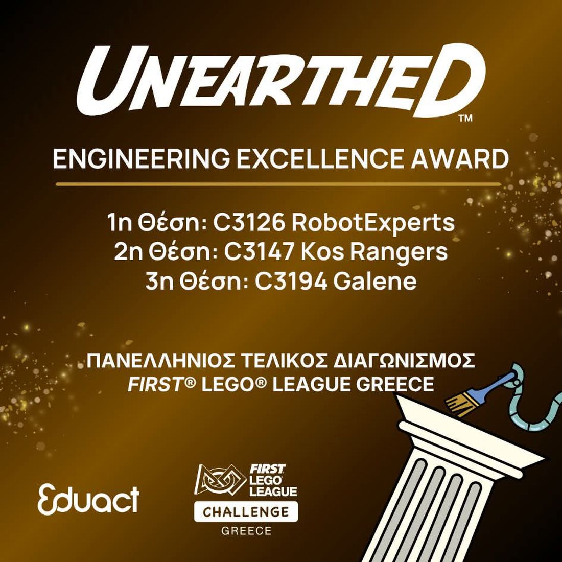 Η ομάδα, εκπροσωπώντας επάξια το νησί της Κω, κατάφερε να ξεχωρίσει, κατακτώντας τη 2η θέση στο Engineering Excellence Award. Το βραβείο αυτό επιβραβεύει ομάδες που σχεδίασαν αποτελεσματικά ένα ρομπότ και ένα καινοτόμο project που πραγματικά απευθύνεται στην πρόκληση της σεζόν ενώ παράλληλα επέδειξαν εξαιρετικά Core Values σε ό,τι κάνουν.