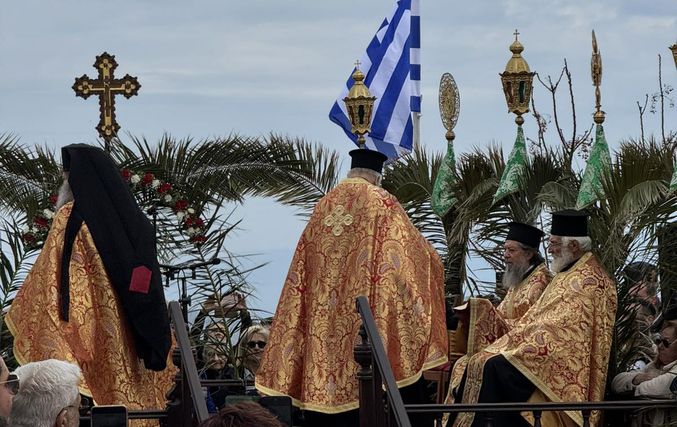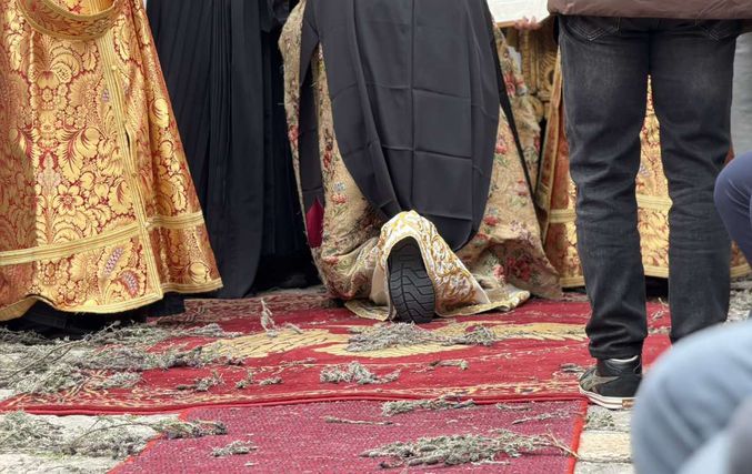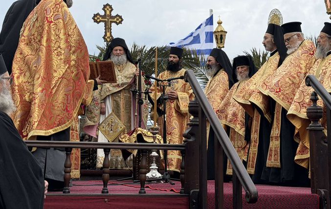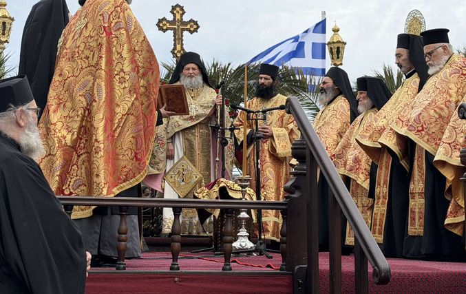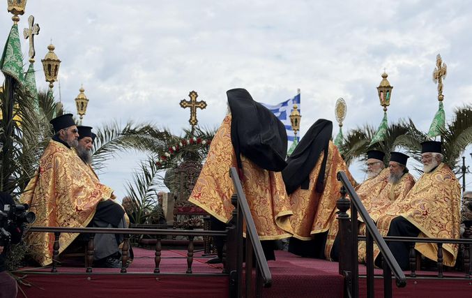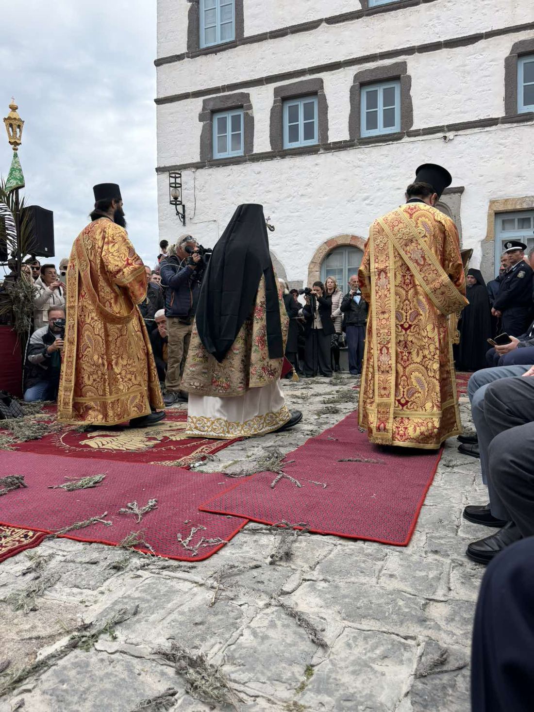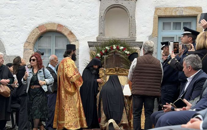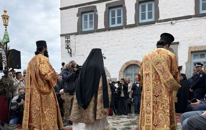 Σε κλίμα βαθιάς κατάνυξης κάτω από τον ανοιξιάτικο ουράνο και με την παρουσία εκατοντάδων πιστών, αναβίωσε και φέτος το πρωί της Μεγάλης Πέμπτης στην Πάτμο το μοναδικό έθιμο της Τελετής του Ιερού Νιπτήρα.