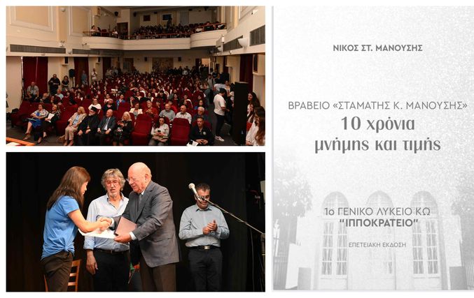 Με αφορμή τη φετινή επέτειο, παρουσιάστηκε και το επετειακό λεύκωμα “10 Χρόνια Τιμής και Μνήμης”, που περιλαμβάνει το χρονικό του θεσμού, τις τοποθετήσεις του Μητροπολίτη Κώου και Νισύρου κ. Ναθαναήλ, της Επάρχου Κωνσταντίνας Σβύνου και των διευθυντών του Λυκείου, καθώς και σύντομο ιστορικό του Ιπποκρατείου Γυμνασίου–Λυκείου Κω, όπου ο Σταμάτης Μανούσης υπήρξε μαθητής της πρώτης τάξης το 1918. Επίσης όλες τις βραβεύσεις και τους χαιρετισμούς των αριστούχων.