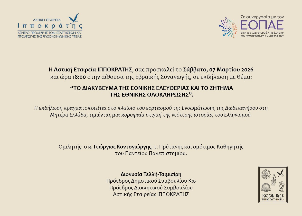 Εκδήλωση της Αστικής εταιρείας "Ιπποκράτης" με θέμα: "Το διακύβευμα της εθνικής ελευθερίας και το ζήτημα της εθνικής ολοκλήρωσης"