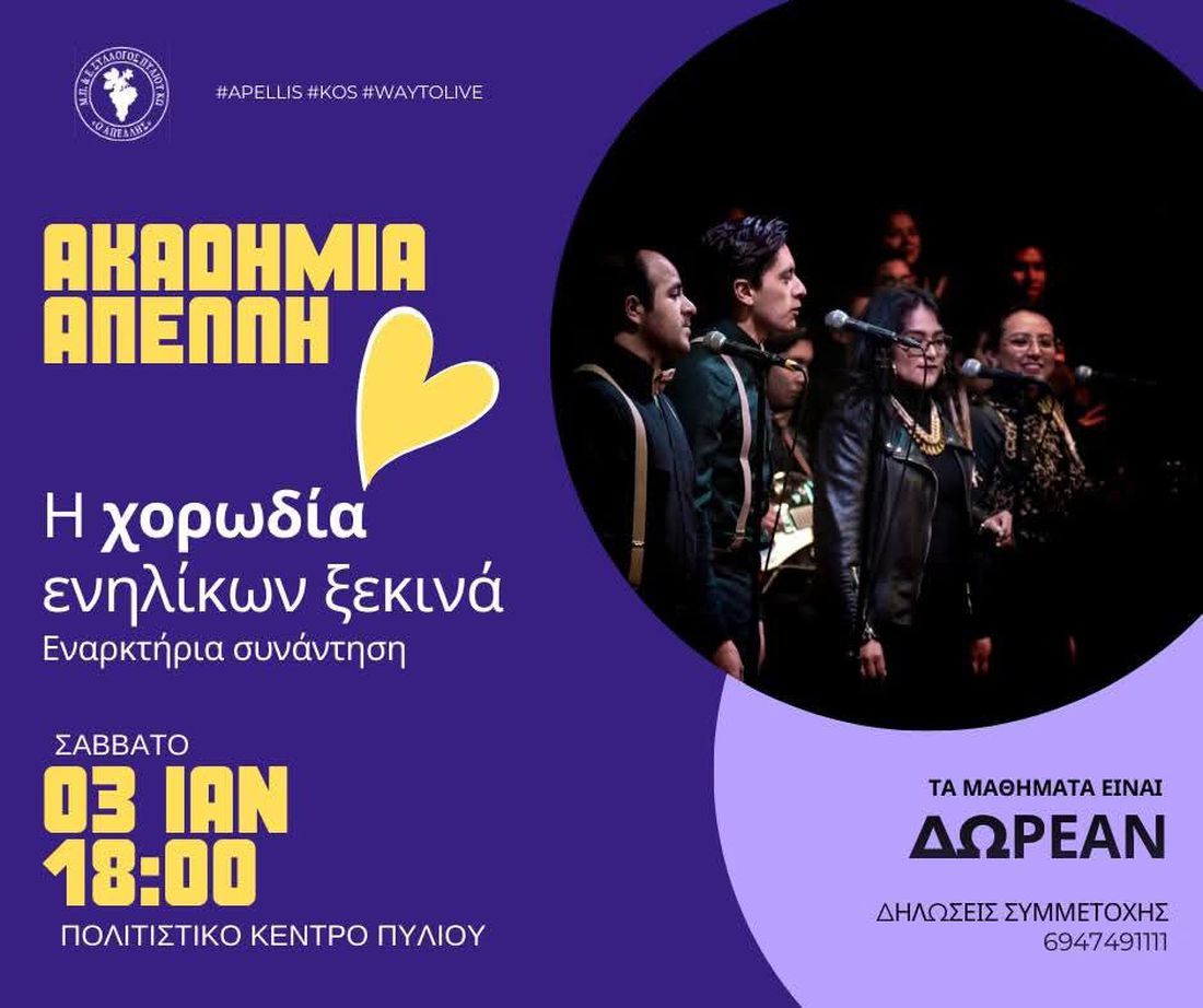 Η Ακαδημία του Μ.Π.Ε.Σ. Απέλλη ανοίγει τις πόρτες της για πρώτη φορά, για ενήλικες με πάθος για τη φωνή και τη μουσική! Δεν έχει σημασία αν είσαι αρχάριος ή προχωρημένος – κάθε φωνή αξίζει να ακουστεί.
