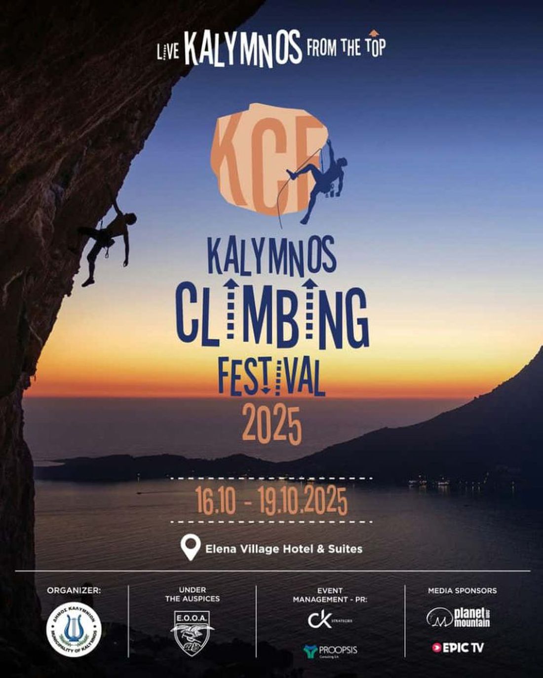 Το Φεστιβάλ πραγματοποιείται με τη συνεργασία του Δήμου Καλυμνίων και την συνδρομή της CK Strategies αλλά καιαναρριχητικών συλλόγων, εθελοντών και επιχειρηματιών που στηρίζουν με ενθουσιασμό αυτή τη μεγάλη γιορτή της αναρρίχησης και της εξωστρέφειας. Σε τούτο το σημείο, η Κάλυμνος δεν αποτελεί απλώς έναν μοναδικό αναρριχητικό προορισμό. Είναι τόπος όπου η φύση, ο άνθρωπος και το άθλημα συναντιούνται με αρμονία. Ένα νησί που μετουσιώνει το πνεύμα της περιπέτειας και της φιλοξενίας, μετατρέποντας κάθε ανάβαση σε εμπειρία ζωής και κάθε συμμετοχή σε γιορτή ανθρώπινης υπέρβασης.