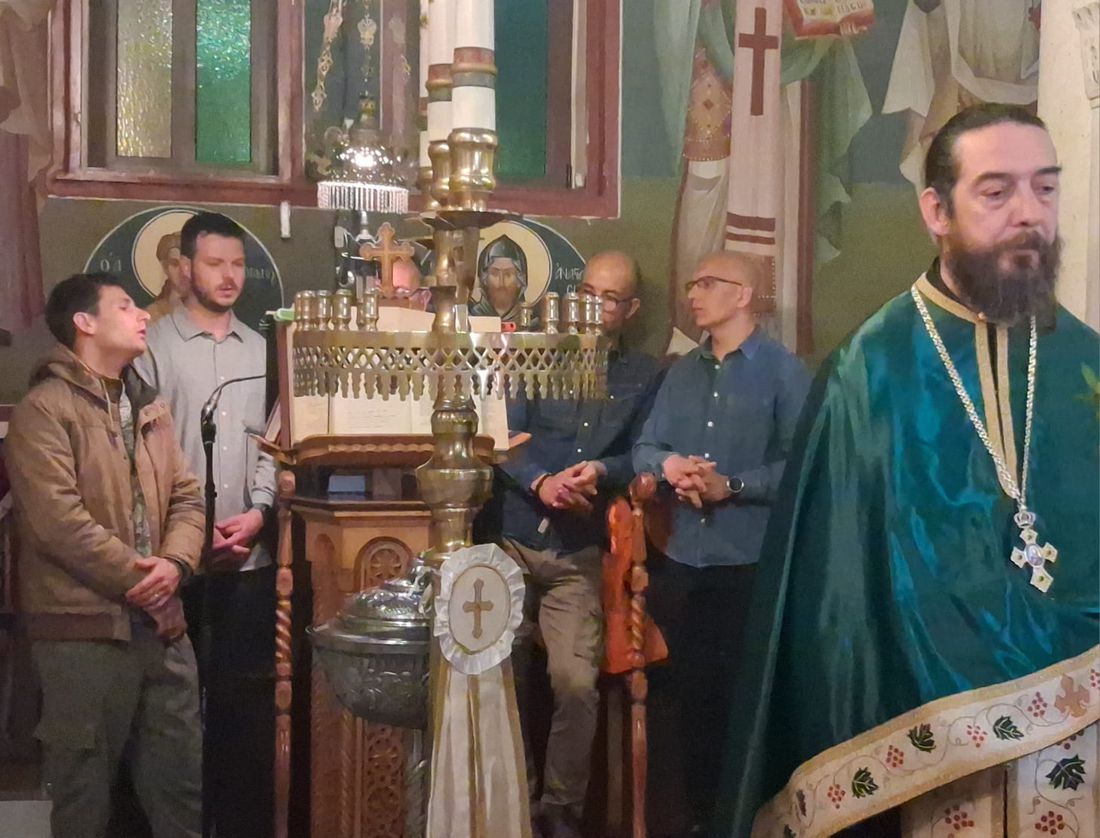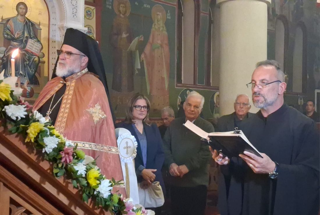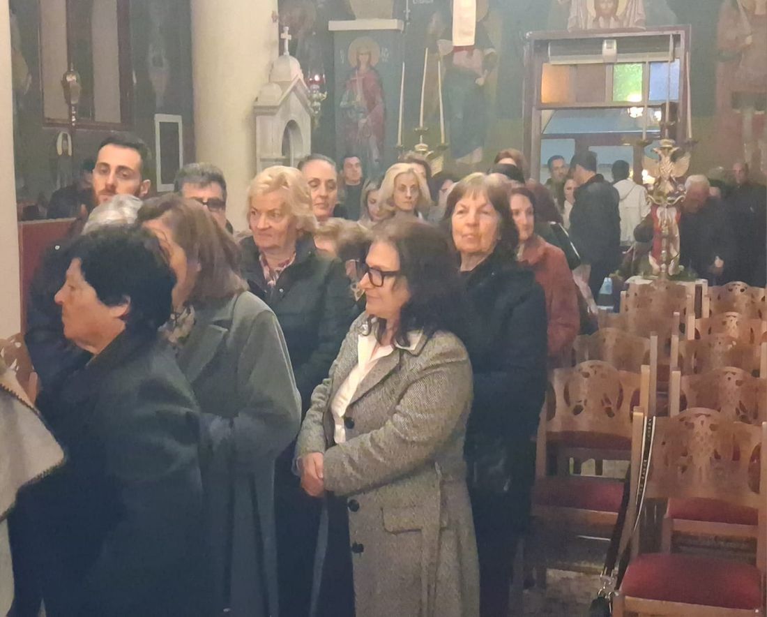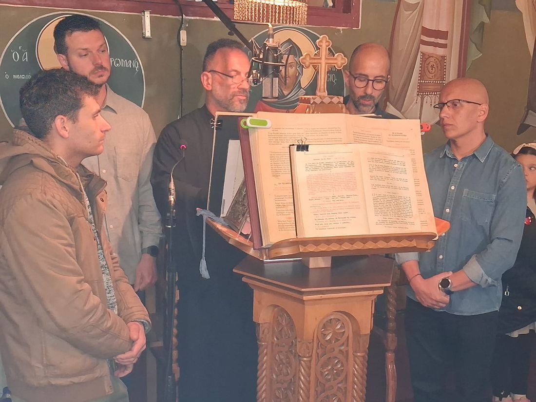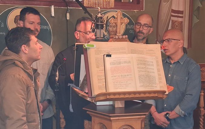 Έψαλλε χορός ιεροψαλτών του ναού, υπό τον Πρωτοψάλτη Τρύφωνα Γεωργίου, Άγγελος Μαλαμίδης, Ματθαίος Πανταζόπουλος, Κώστας Τσολιάς και Κώστας Δασουράς.