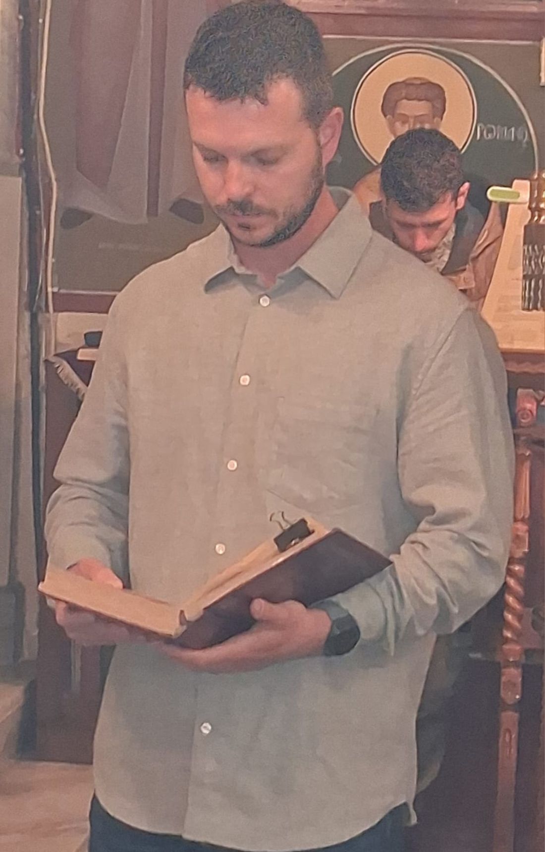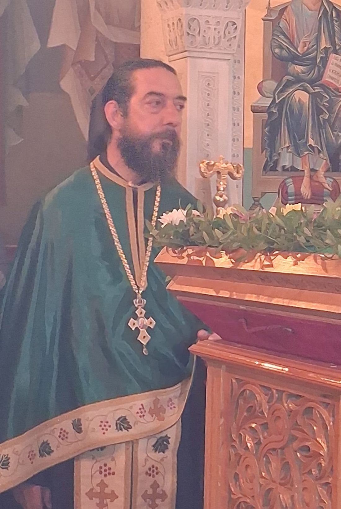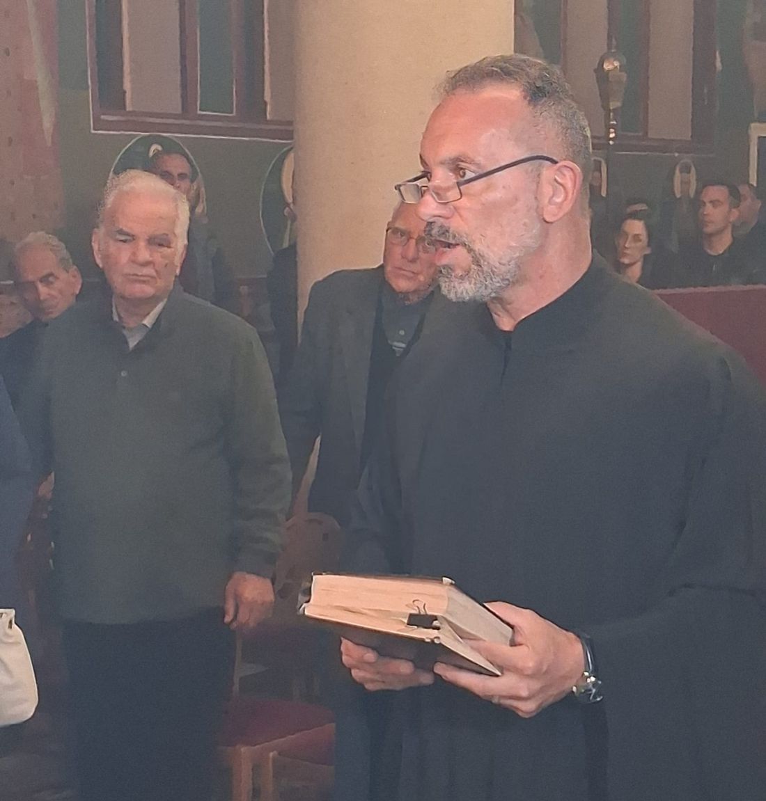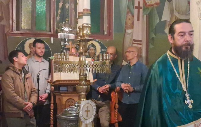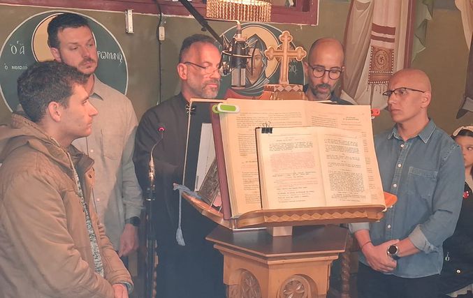 Έψαλλε χορός ιεροψαλτών του ναού, υπό τον Πρωτοψάλτη Τρύφωνα Γεωργίου, Άγγελος Μαλαμίδης, Ματθαίος Πανταζόπουλος, Κώστας Τσολιάς και Κώστας Δασουράς.