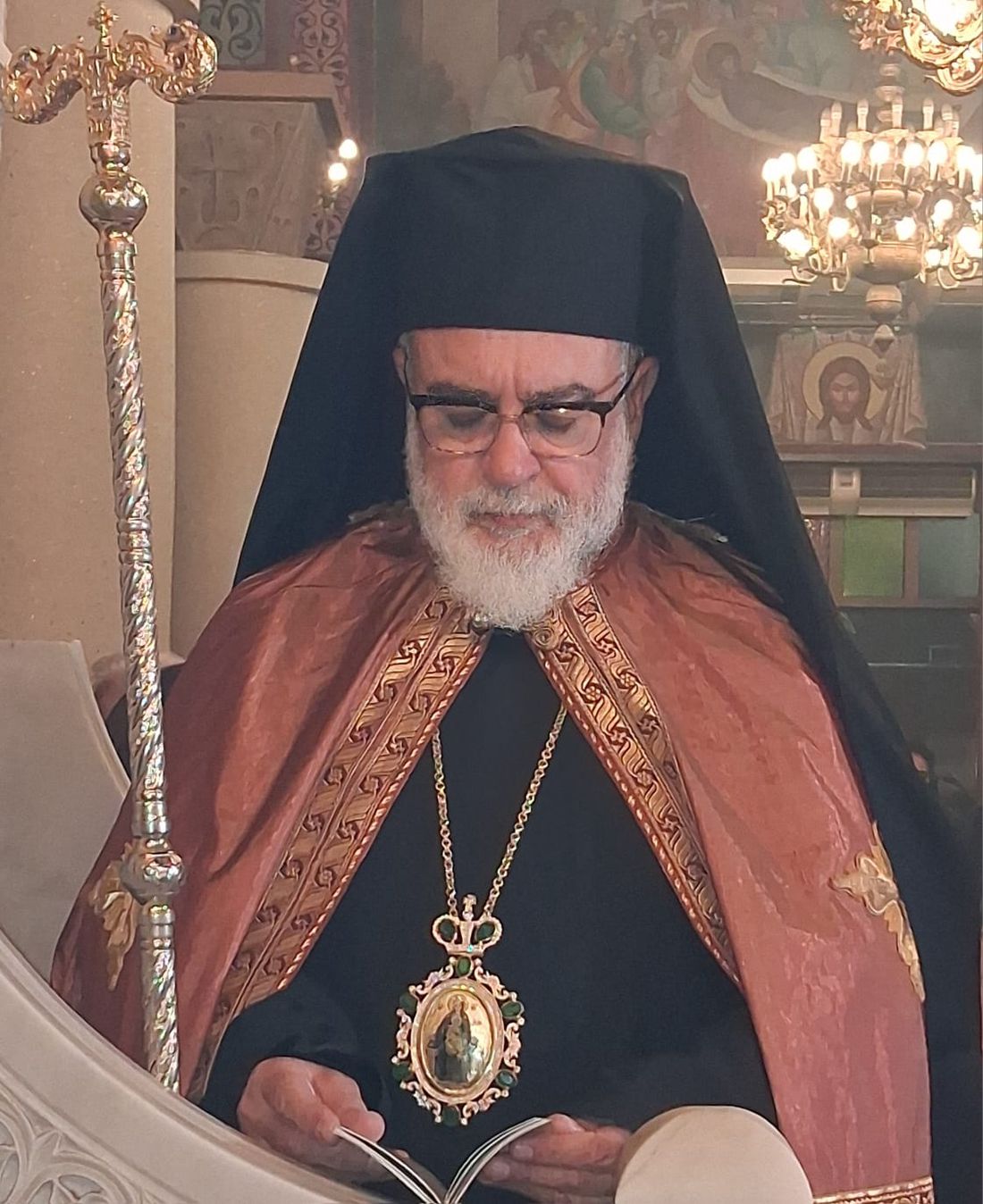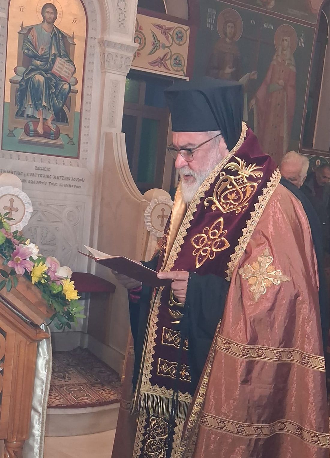 Ο Σεβασμιώτατος έψαλλε την τέταρτη στάση, συμπαραστατούμενος από τον Ιερατ. Προϊστάμενο του ιερού ναού π. Αναστάσιο Γιώτη.