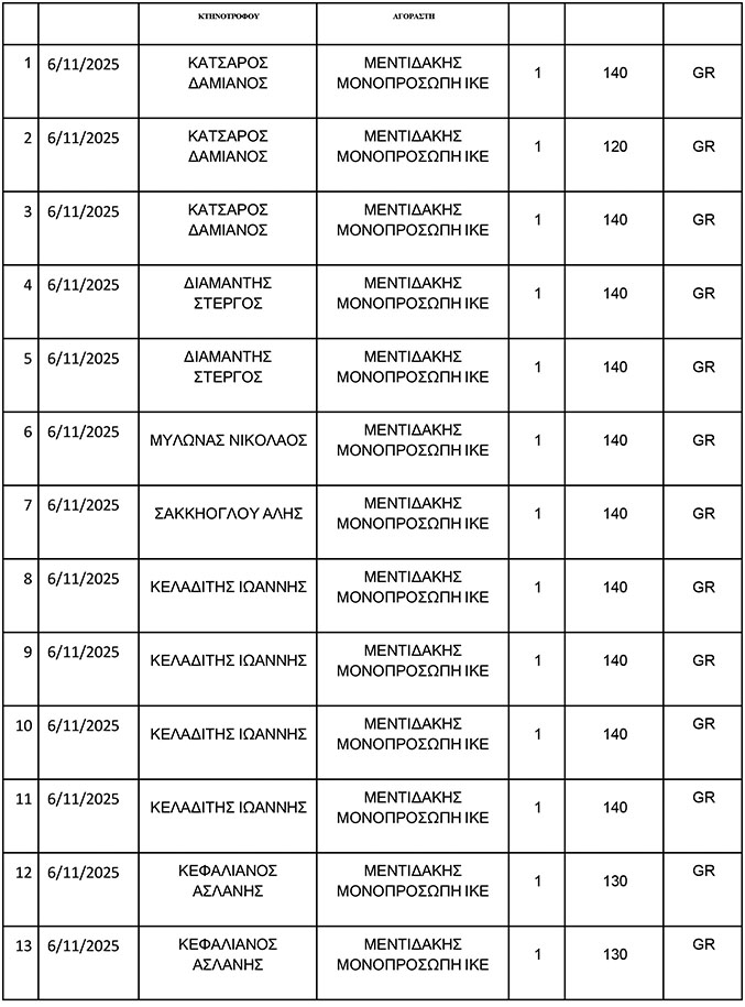 Σας αποστέλλουμε πίνακα όπου απεικονίζονται αναλυτικά οι σφαγές οι οποίες έλαβαν χώρα στο Δημοτικό Σφαγείο Κω την Τετάρτη 5/11/2025 και την Πέμπτη 6/11/2025.
