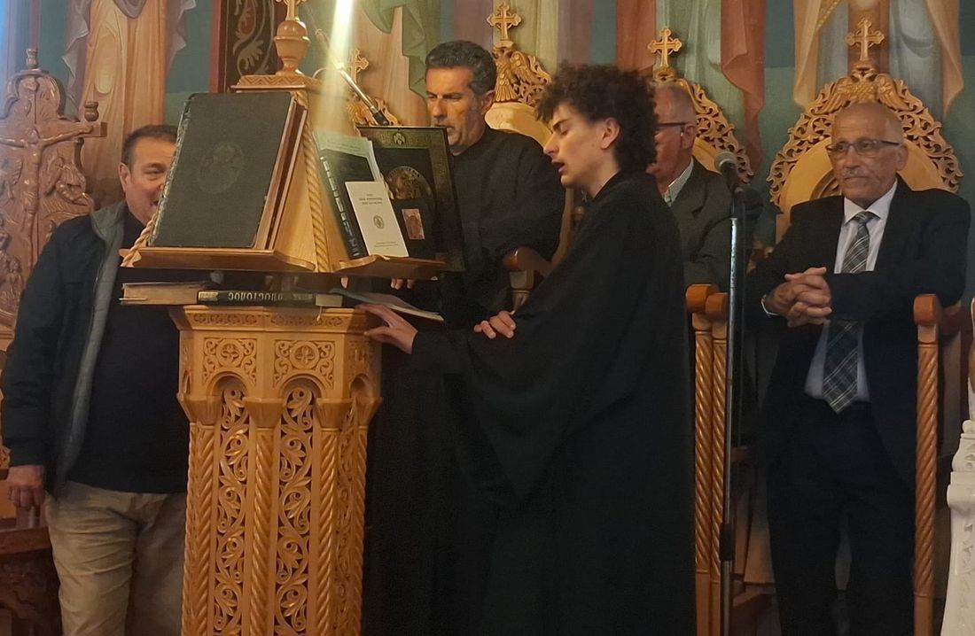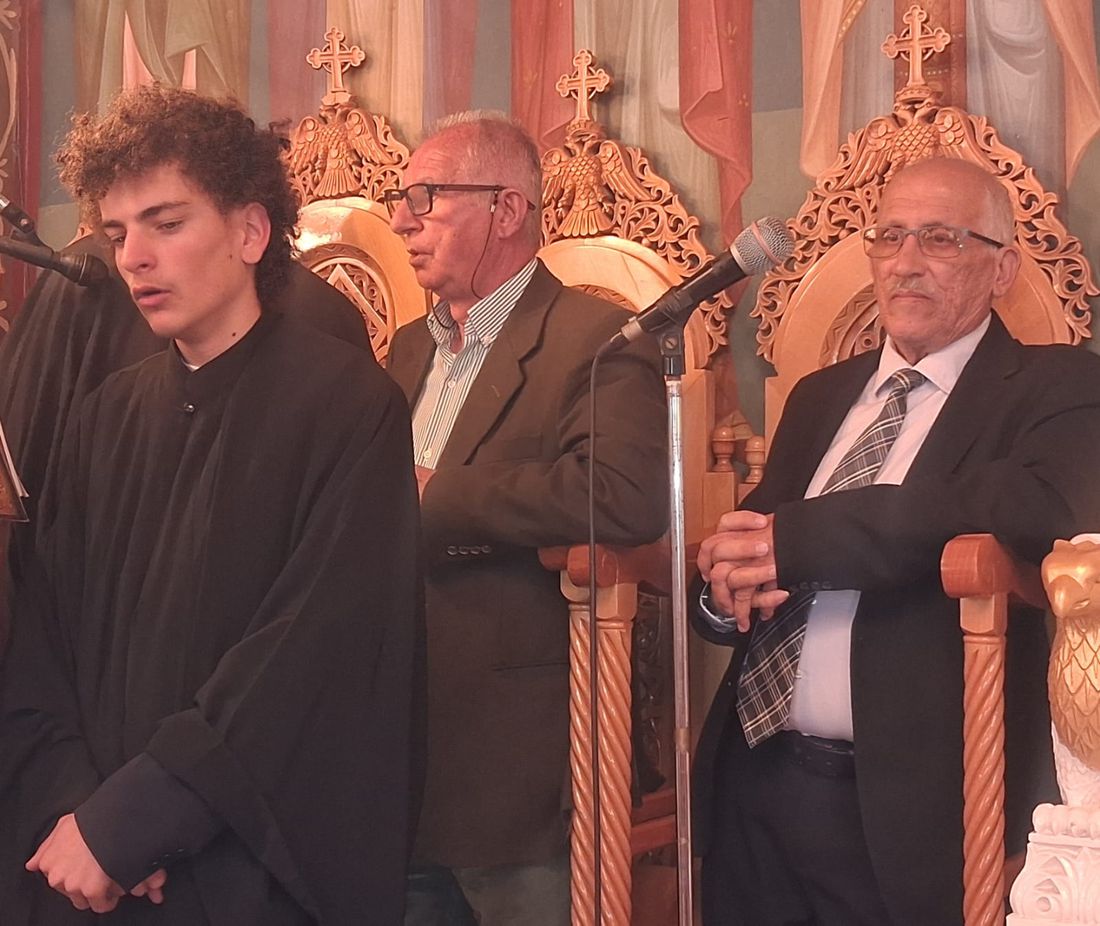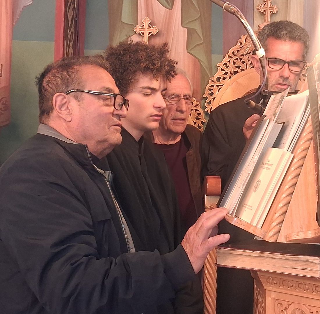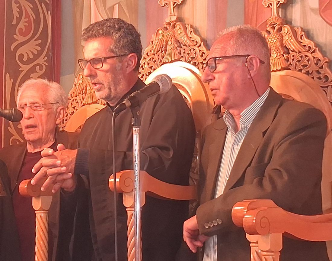 Έψαλλαν οι Ιεροψάλτες του ιερού ναού: Σεβαστιανός Παναγιώτου, Παναγιώτης Κούβελος, Δαυίδ Καλλούδης, Ηλίας Δανάς και Ευάγγελος Παλούμπης.