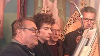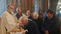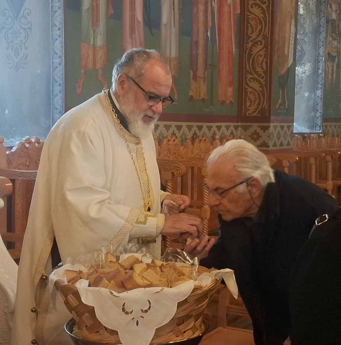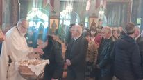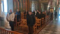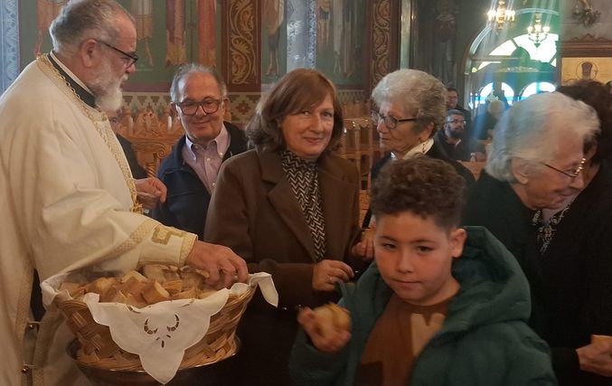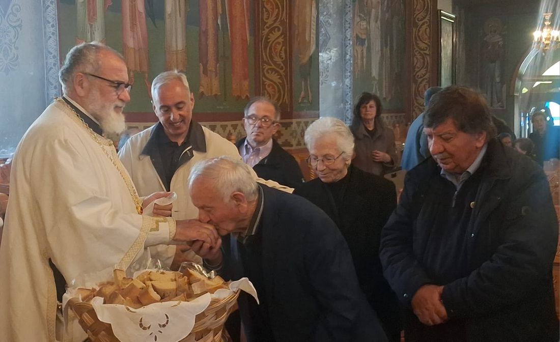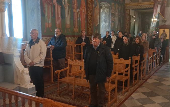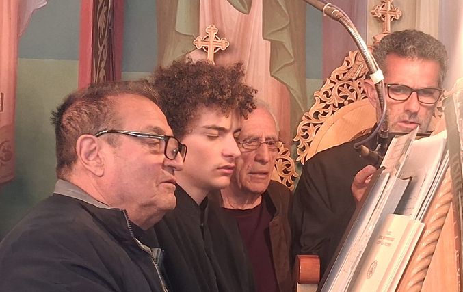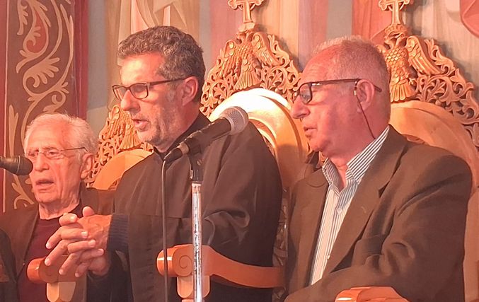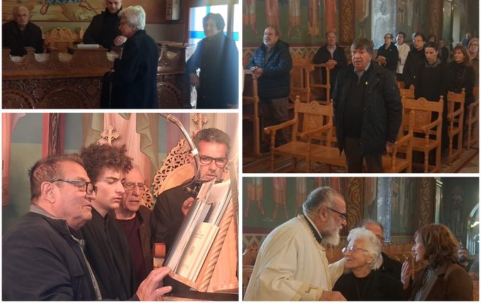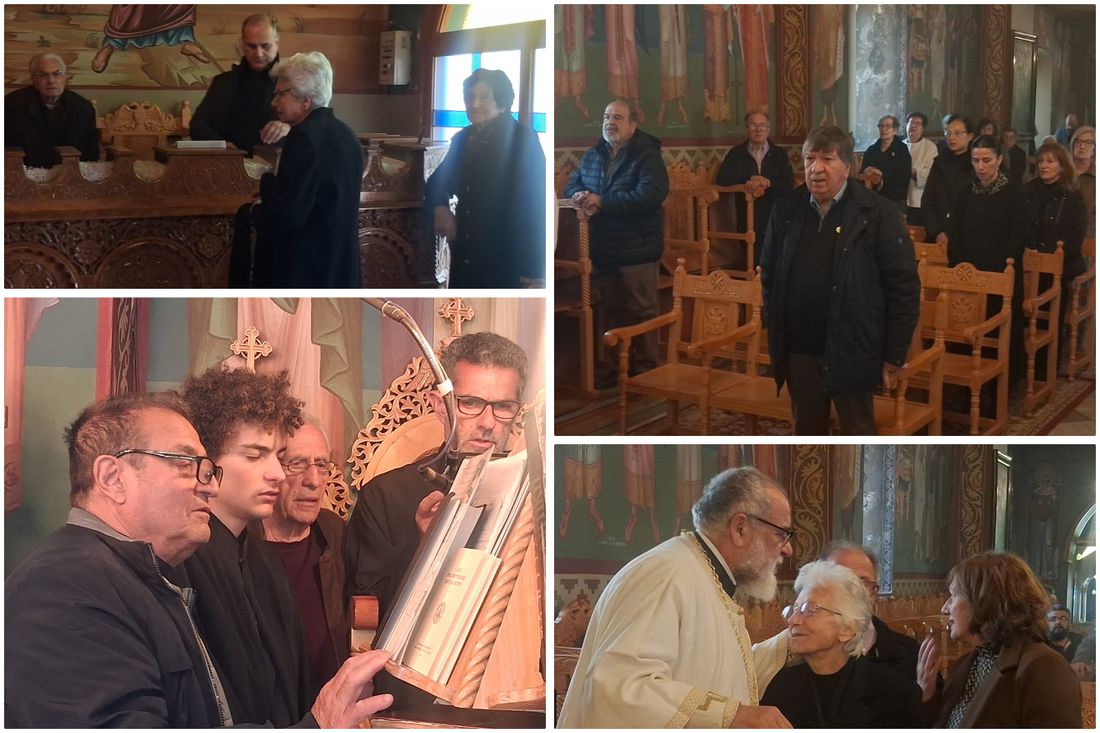 Έψαλλαν οι Ιεροψάλτες του ιερού ναού: Σεβαστιανός Παναγιώτου, Παναγιώτης Κούβελος, Δαυίδ Καλλούδης, Ηλίας Δανάς και Ευάγγελος Παλούμπης.