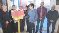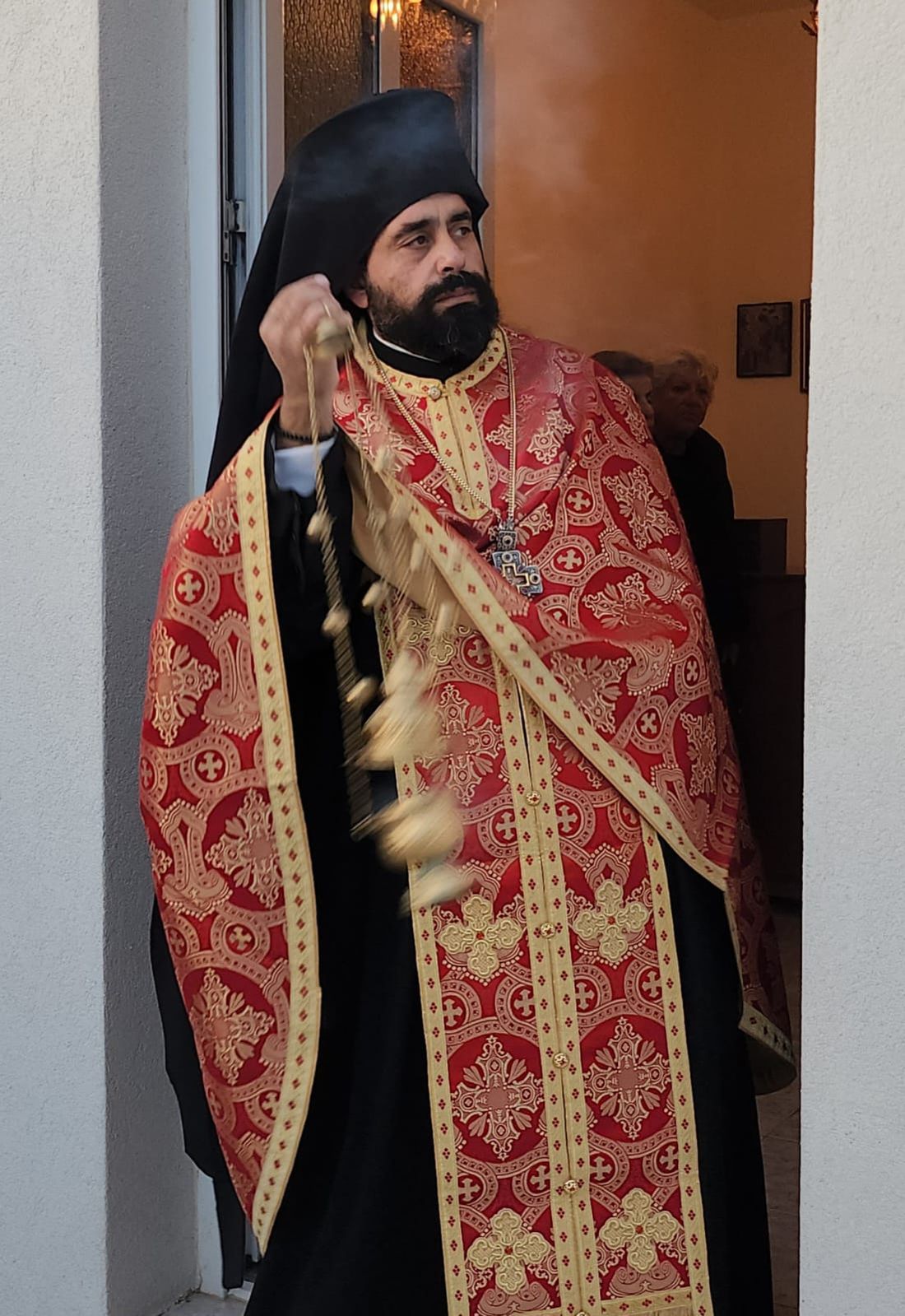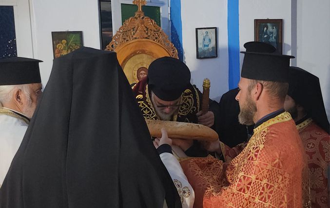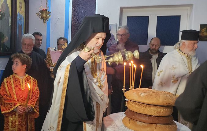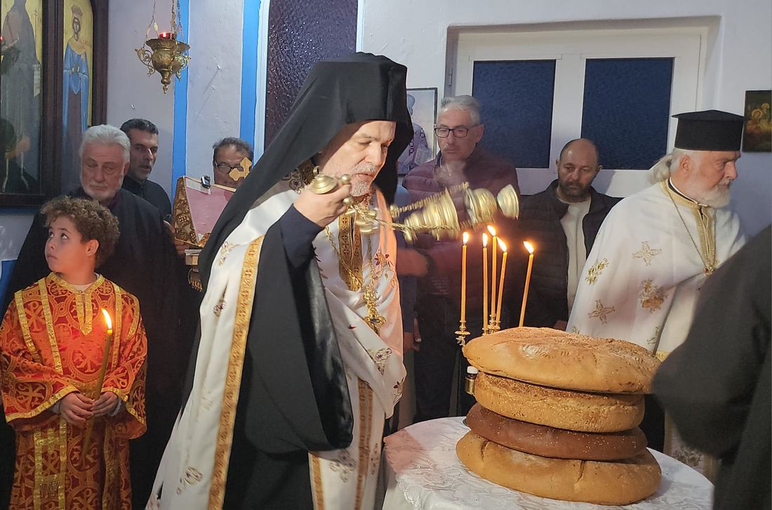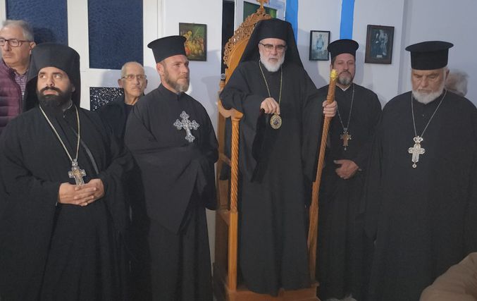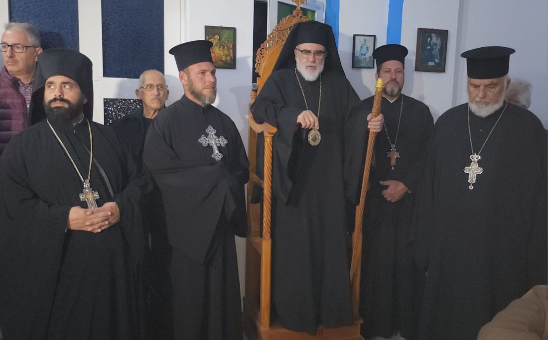Τον Σεβασμιώτατο πλαισίωναν: οι Αρχιμανδρίτες π. Αθηναγόρας Αθανασίου και π. Διονύσιος Παριάρος, ο Αρχιερατικός επίτροπος π. Αντώνιος Κασιώτης και οι ιερείς π. Ηλίας Καμπάκης, π. Περικλής Πουλέντσης και π. Κλεάνθης Μαρούσκος.
