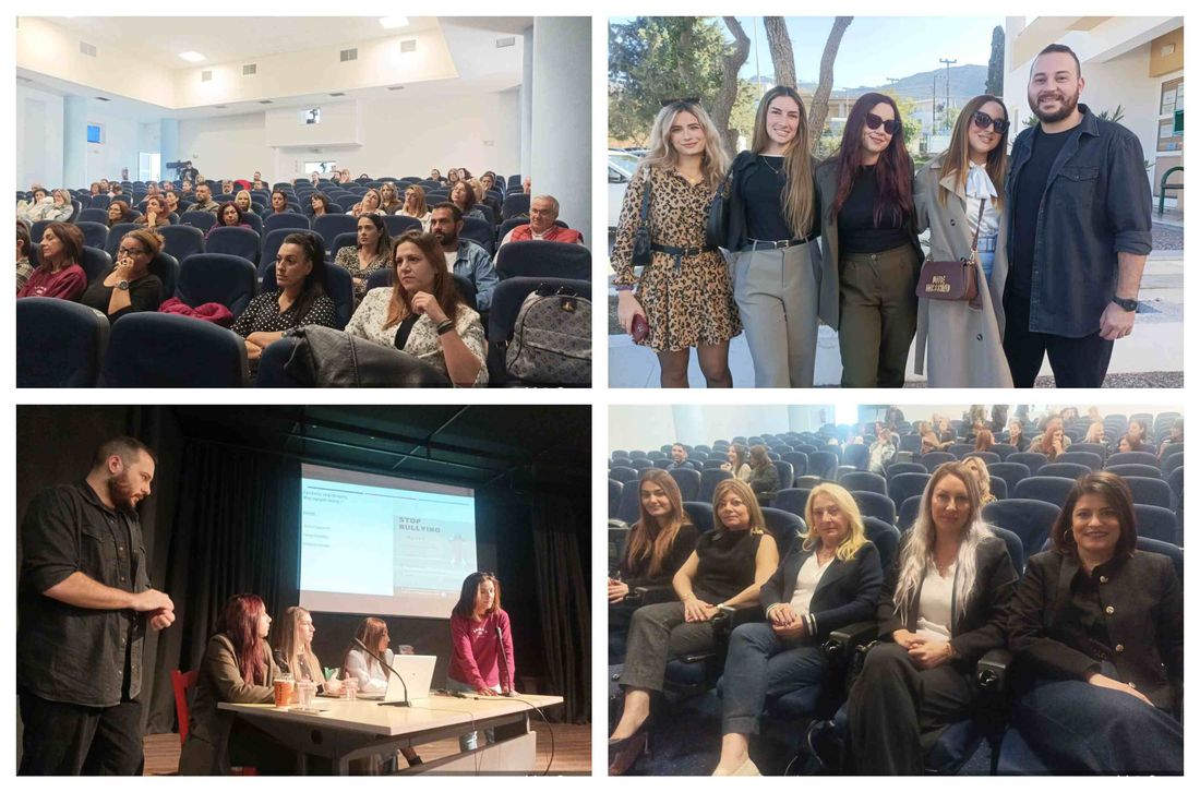 Στην ημερίδα συμμετείχαν οι ψυχολόγοι του κέντρου Άννα Γεωργαντή και Γιάννα Πισσάρη σε συνεργασία με την ψυχολόγο Κοντέσσα Καλύβα και ανέλυσαν το φαινόμενο του bullying και του σχολικού εκφοβισμού.