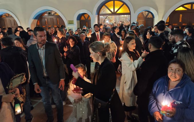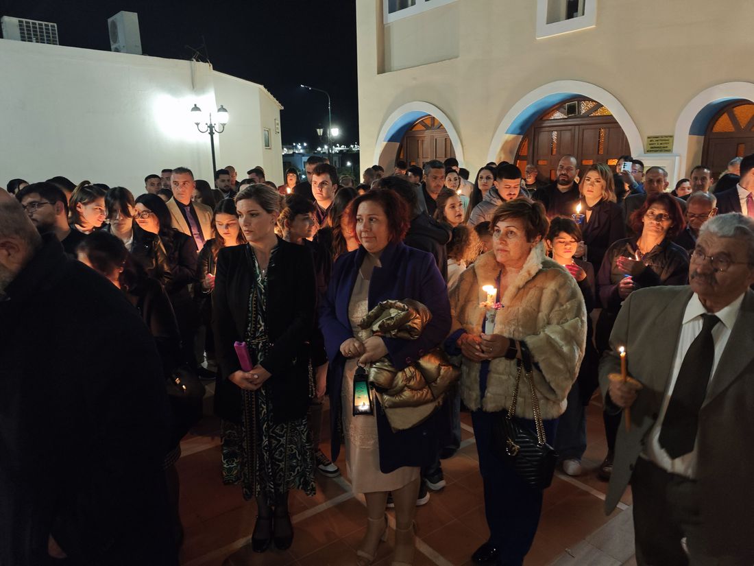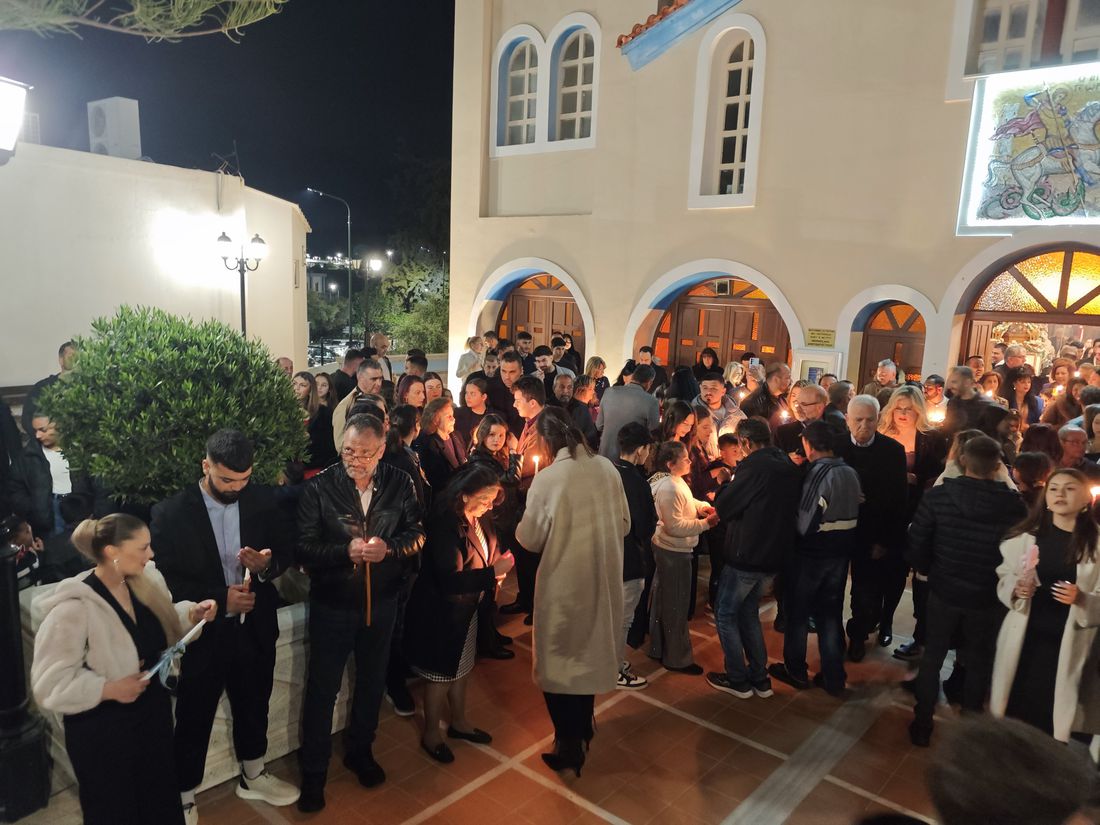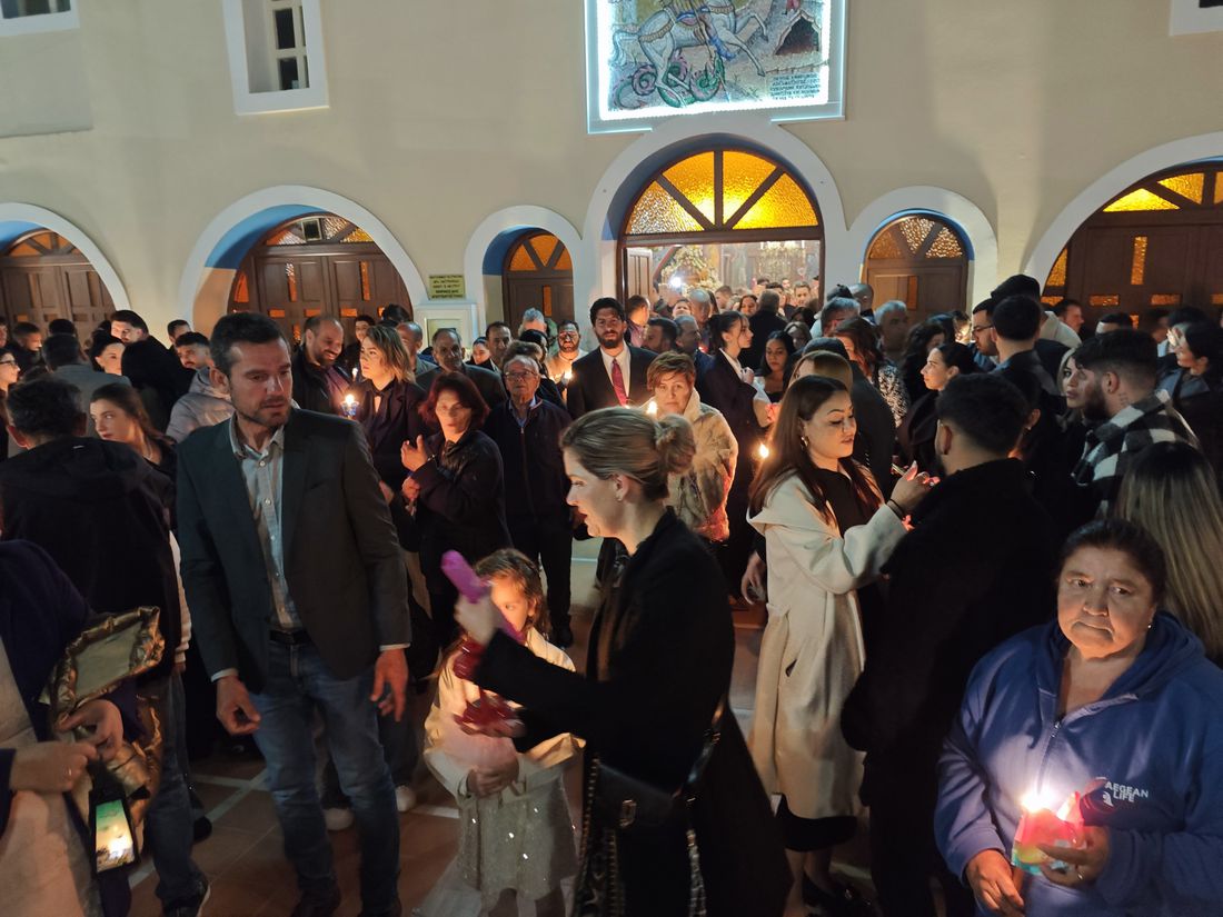 Οι καμπάνες ήχησαν χαρμόσυνα, σκορπίζοντας παντού το μήνυμα της Ελπίδας, της Αναγέννησης και της Ζωής, ενώ το φως των κεριών φώτιζε τα πρόσωπα των πιστών, δημιουργώντας μια εικόνα μοναδικής πνευματικής ενότητας και κατάνυξης.