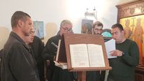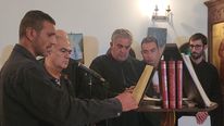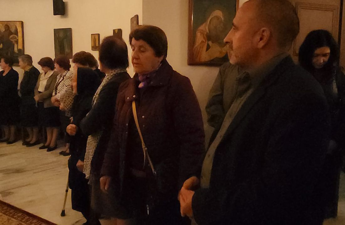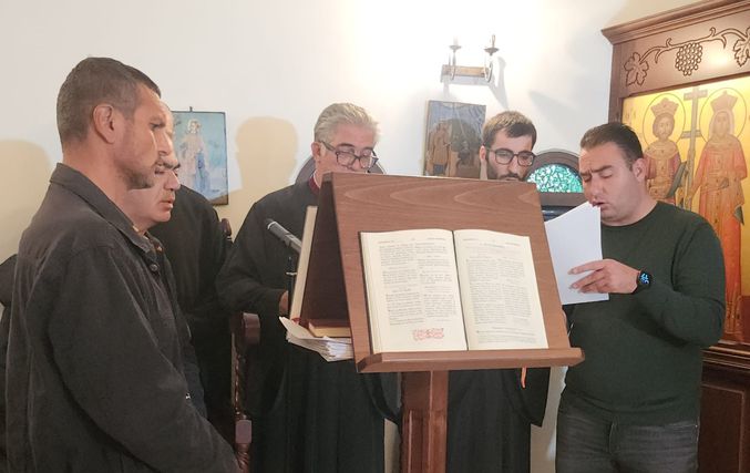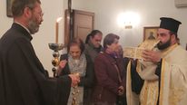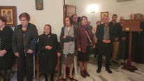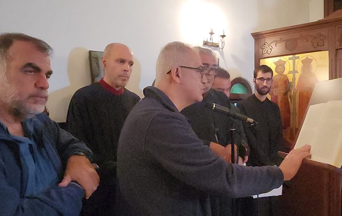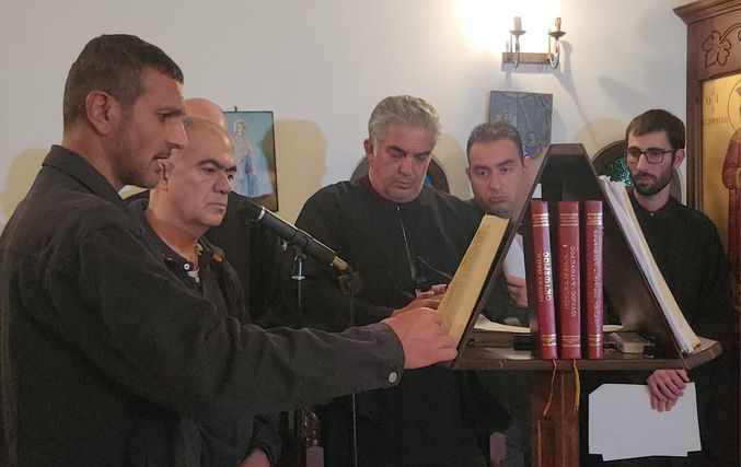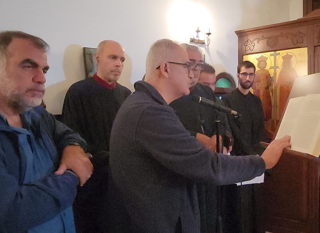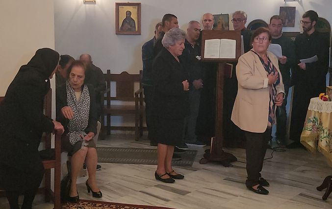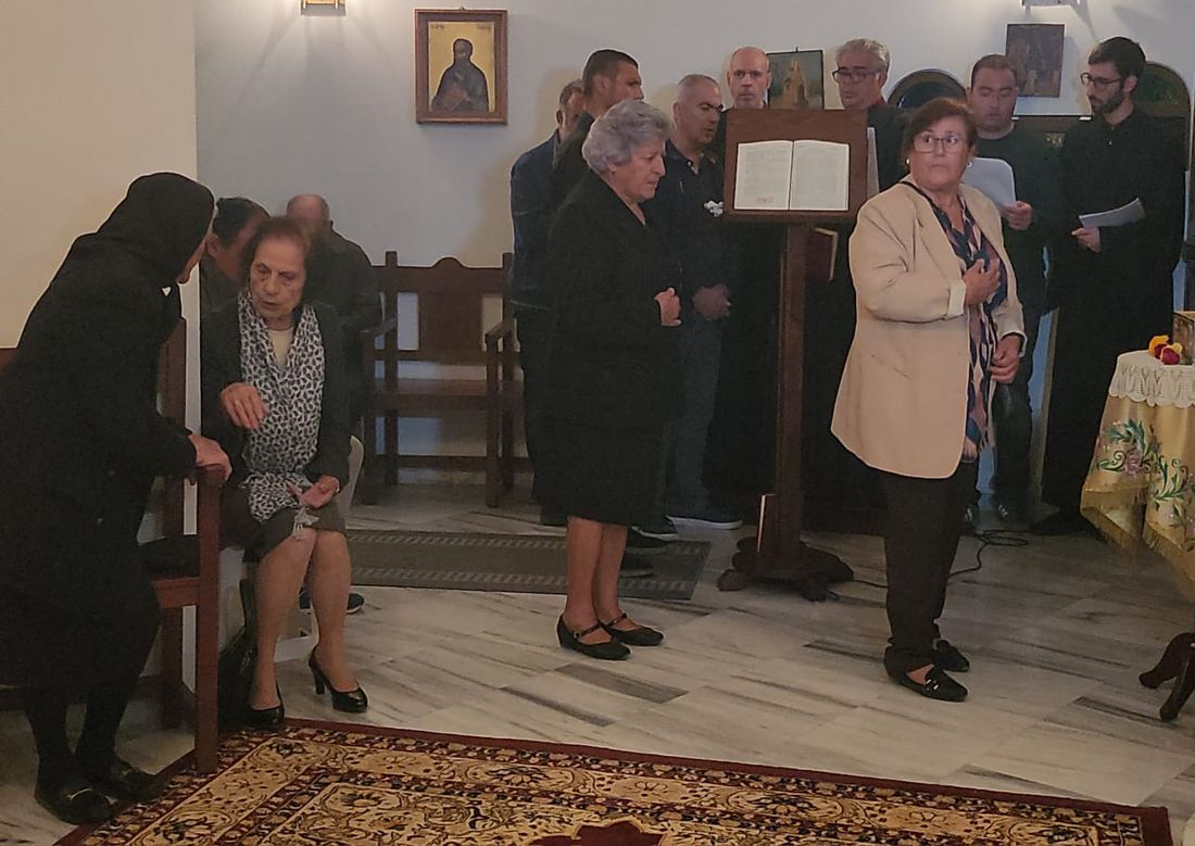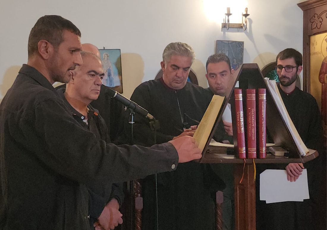 Έψαλλε χορός ιεροψαλτών υπό τον Πρωτοψάλτη Μιχάλη Ανδρέου, Δημήτρης Τσάμπαλλας, Γιάννης Βαμβακάς, Γιώργος Σανιδάς, Γιάννης Ρώτας, Γιάννης Χαρτοφίλης, Γιάννης Κιάρης.