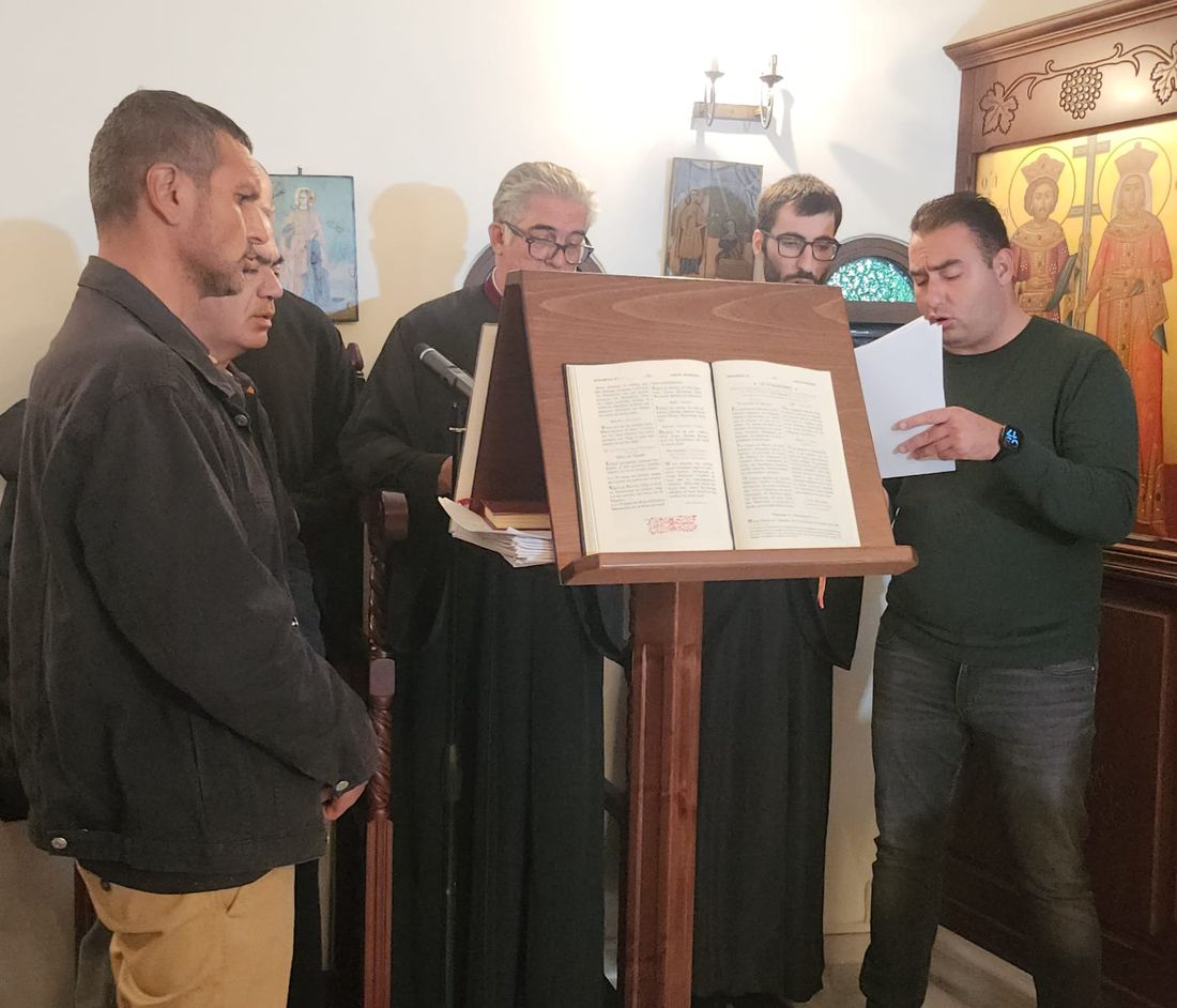 Τον Σεβασμιώτατο πλαισίωναν ο Ιεροκήρυκας της Ιεράς Μητροπόλεως Αρχιμανδρίτης του Οικουμενικού Θρόνου π. Ιωακείμ Οικονομίκος, ο Αρχιερατικός επίτροπος Ηρακλειδών π. Αντώνιος Κασιώτης και οι Ιερείς π. Ευτύχιος Παπαγεωργίου και π. Ιωάννης Σταυρόπουλος.