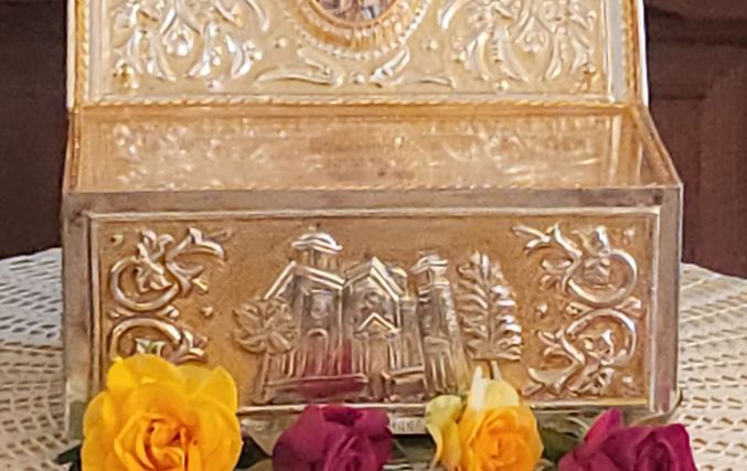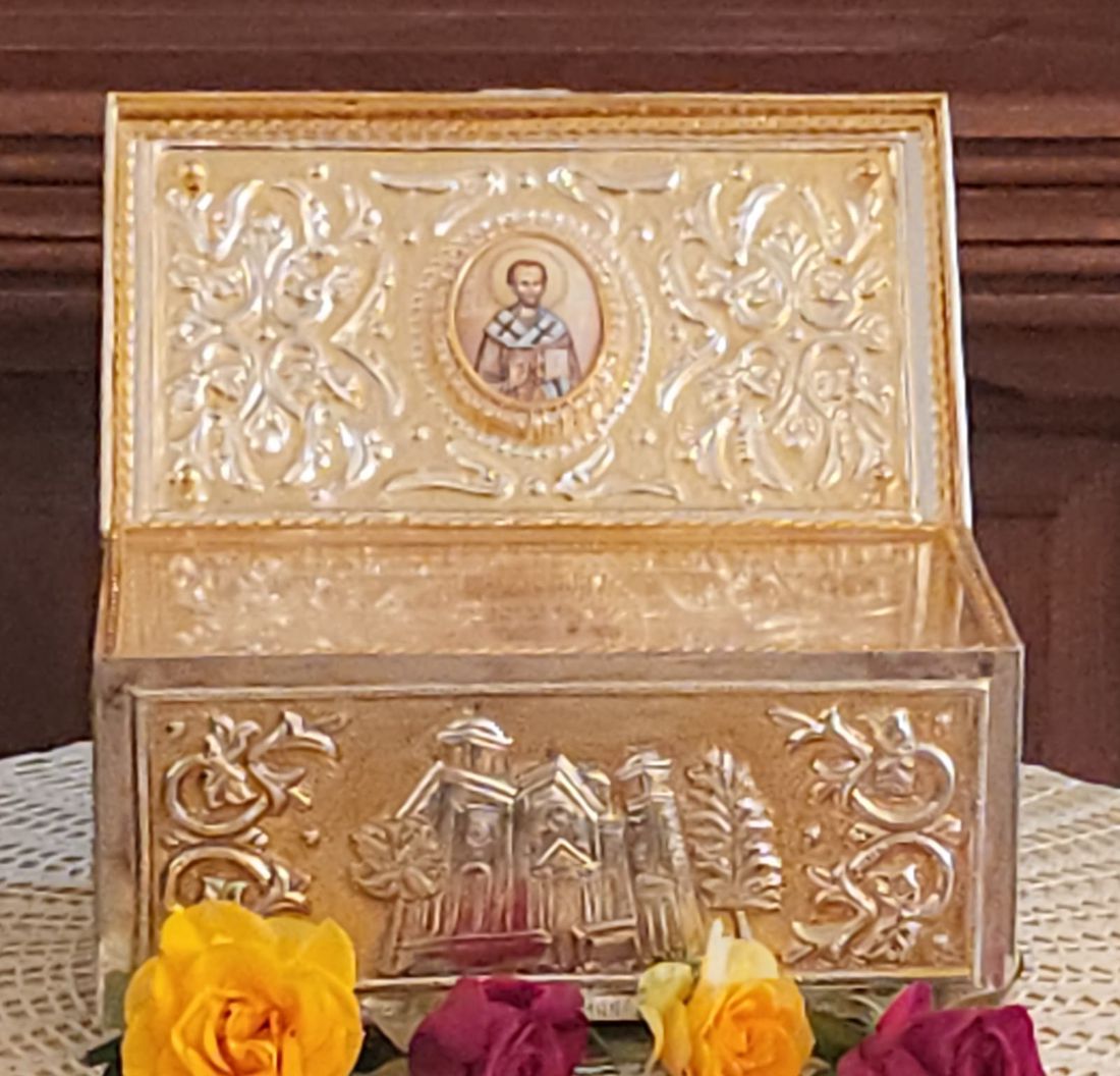 Στο Ιερό Βαπτιστήριο του Αγίου Ιωάννου Χρυσοστόμου θησαυρίζεται προς προσκύνηση τεμάχιο λειψάνου του Αγίου όπως και άλλων Αγίων.