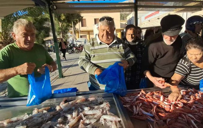 Το ρεπορτάζ μας συνεχίζεται με επίσκεψη μας σε 2 από τα αρκετά Ιχθυοπωλεία του νησιού, της οικογένειας Σάκη Κυπραίου και του Μανώλη Καμπουράκη (ΤΘΟΥΛΑ) στο σταθμό ΤΑΧΙ . Από νωρίς το πρωί, αρκετός κόσμος είχε συγκεντρωθεί εκεί, τηρώντας το παλιό έθιμο να προμηθευτεί τα πρώτα φρέσκα ψάρια της χρονιάς. Οι πάγκοι, γεμάτοι με κουτσομούρες, μπαρμπούνια, γάβρο, λιθρίνια, σκορπιοί, καλαμάρια και άλλες ποικιλίες, προσέφεραν εικόνες αφθονίας και αναβίωσης της θαλασσινής παράδοσης του τόπου.