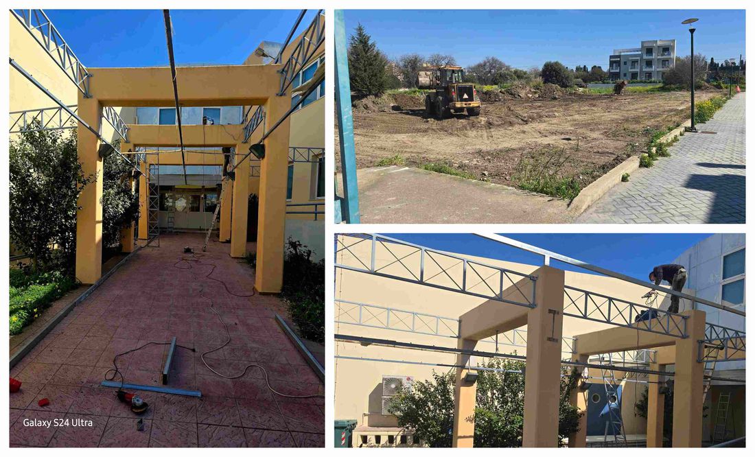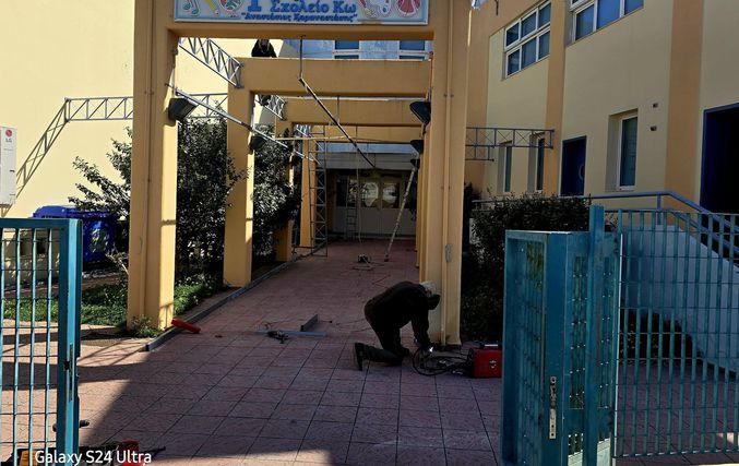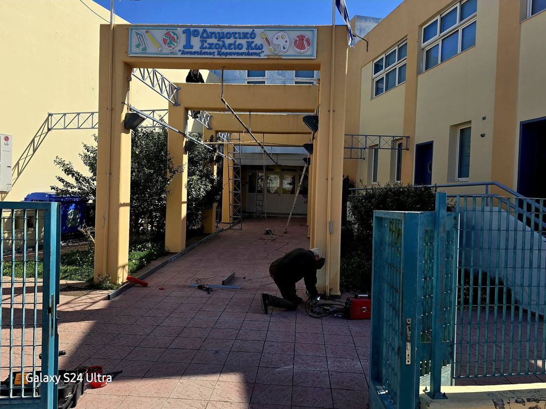 Εργασίες για την τοποθέτηση στεγαστρου πραγματοποιούνται στο 1ο Δημοτικό Σχολείο Κω, καθώς και εργασίες για την διαμόρφωση σύγχρονου αθλητικού χώρου,